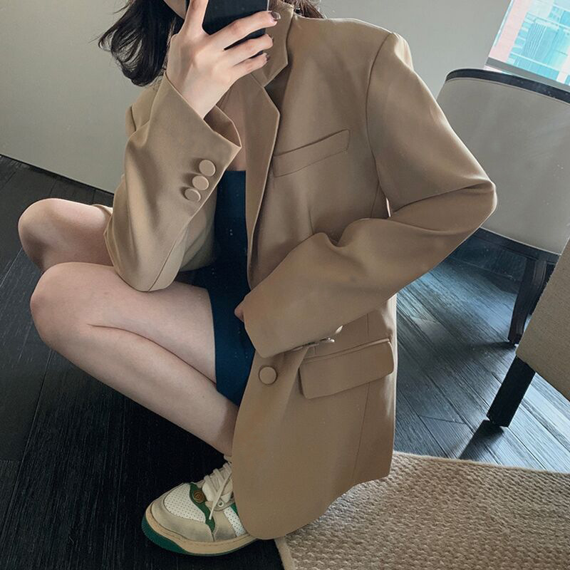 Khaki High-Grade Small Casual Suit Jacket 2022 Spring Autumn Short Elegant Business Suit Women's New Top 中文版