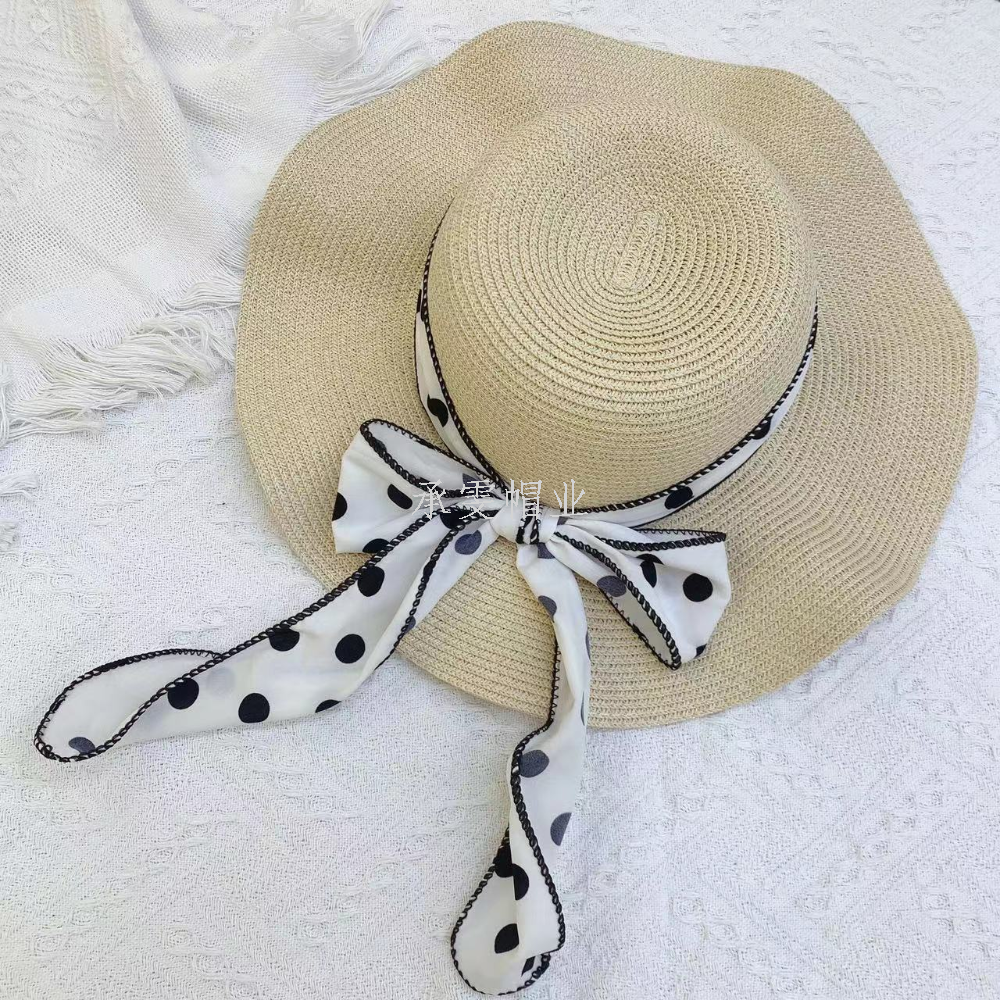 2024 new seaside hat female beach hat sun hat sun protection hat straw hat sun hat girl's cap with ribbon 中文版