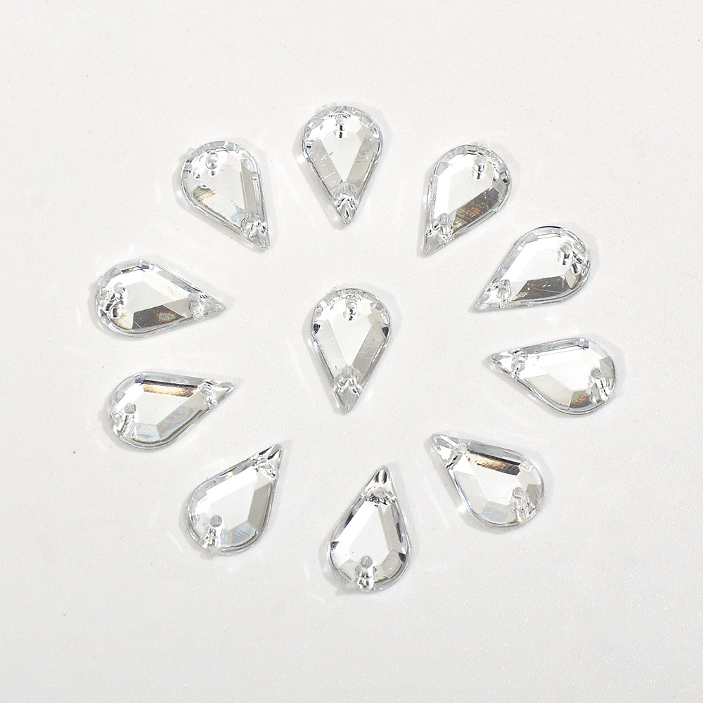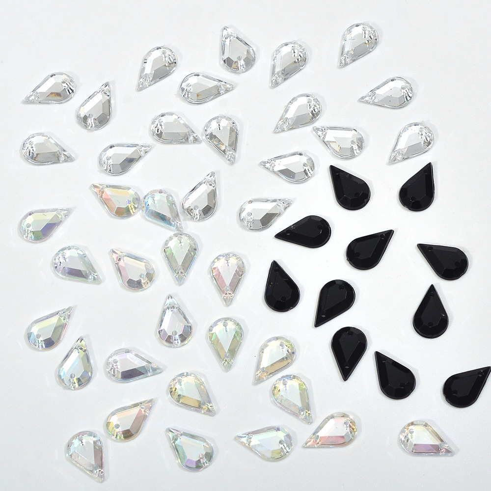 台湾亚克力平底平切水滴双孔手缝钻 服装鞋帽装饰亮片手缝贴钻