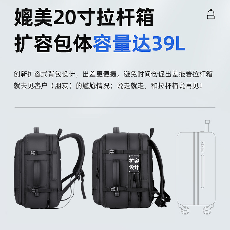 Cross-Border New Arrival Expansion Waterproof Large Capacity Luggage Backpack Men's 17-Inch Computer Bag Business Travel Backpack Men 中文版