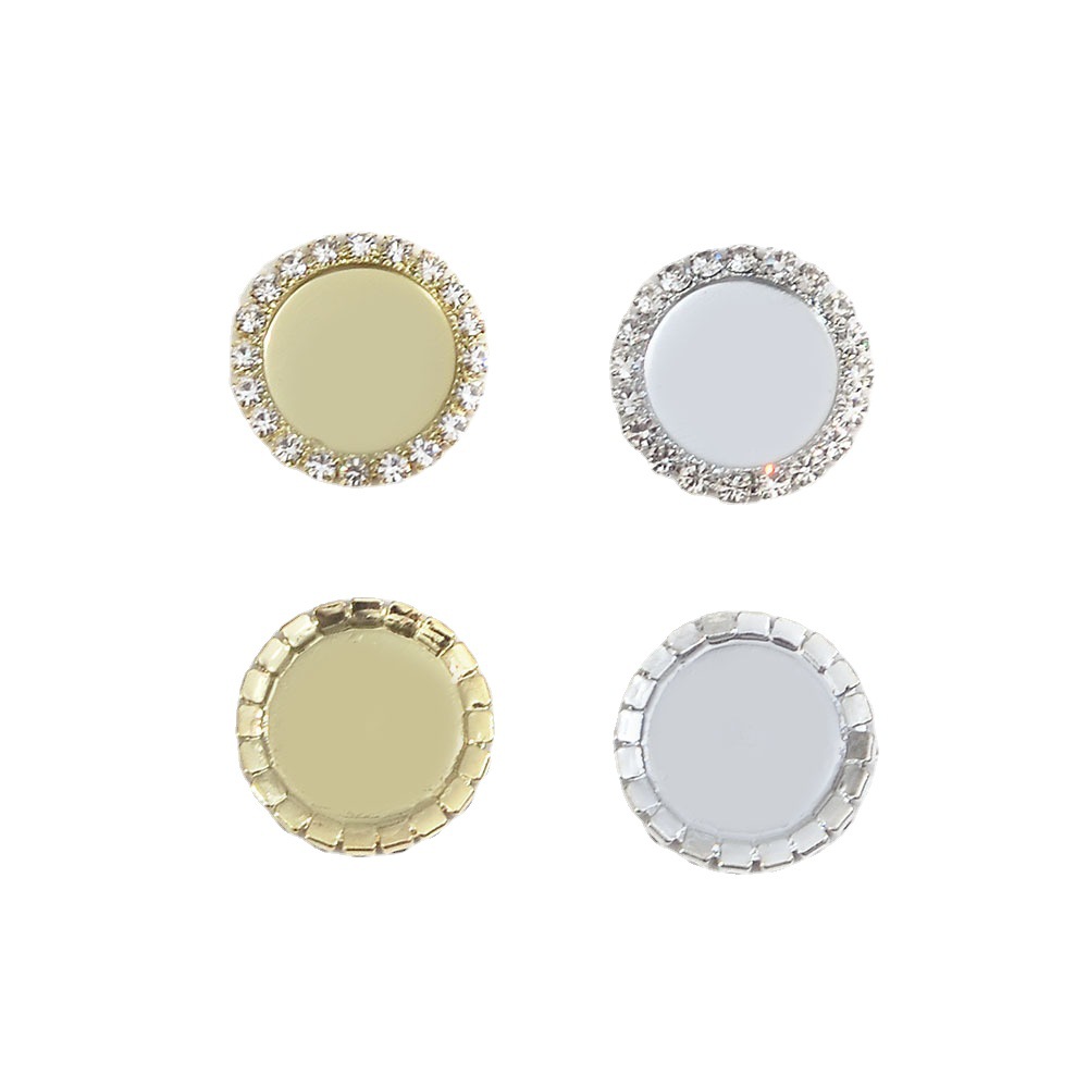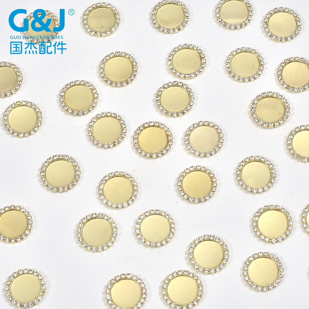 圆形水钻围边链条钻空爪镶嵌平底猫眼石 高亮珍珠用底托 鞋材配饰
