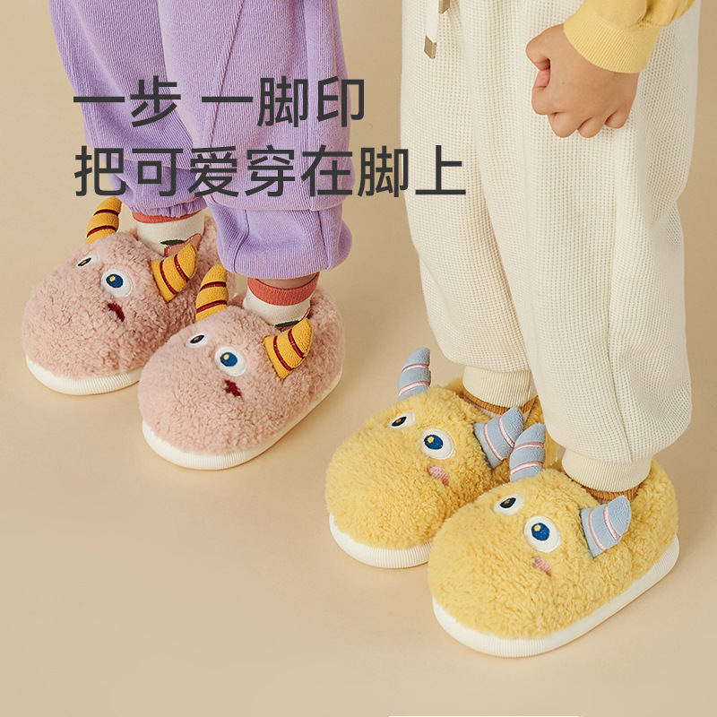 happy children's cotton slippers boys winter cartoon cute indoor home girls bag heel thick plush shoes 中文版