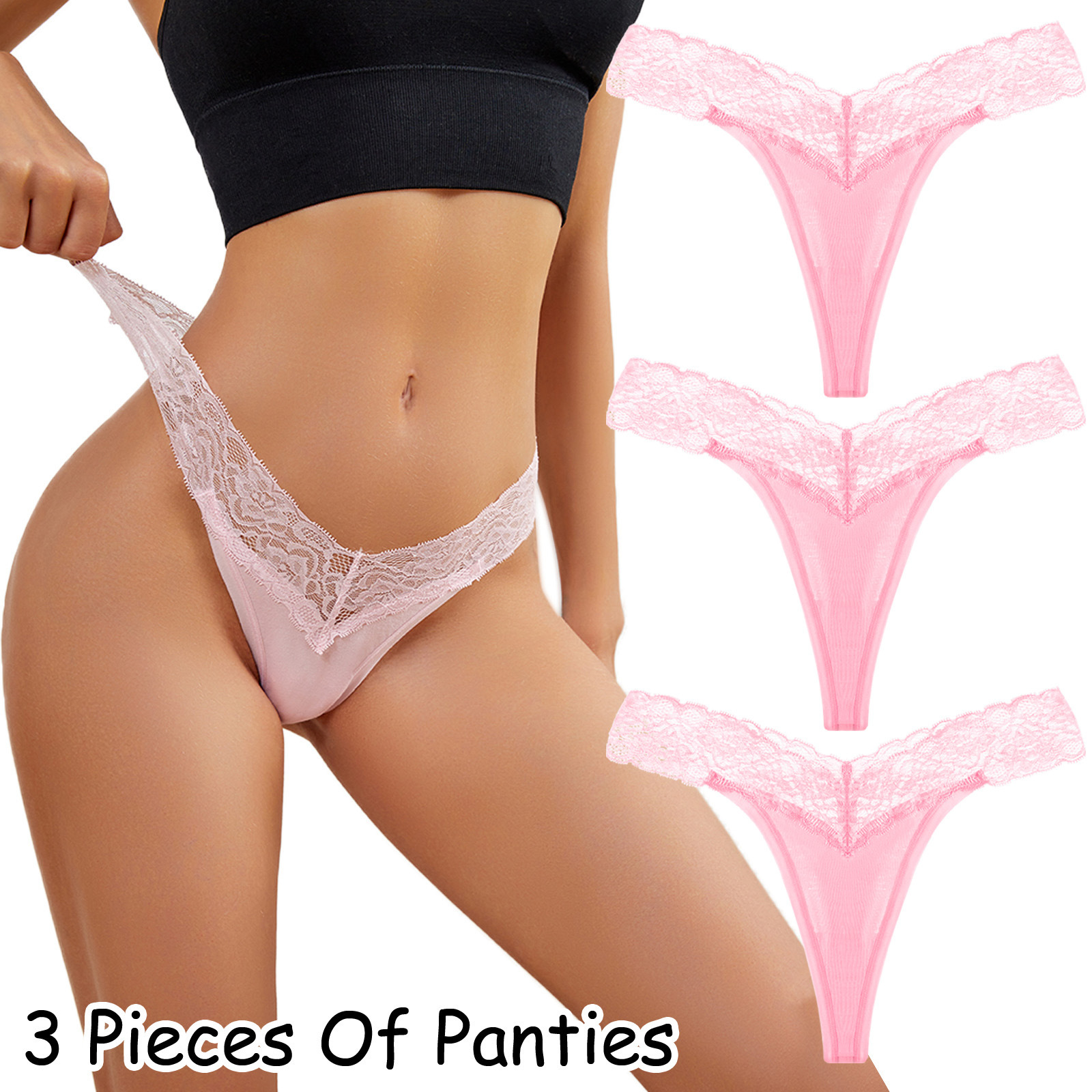 emotional foreign trade european and american women's t-shaped thong back low waist see-through underwear cotton seamless lace 中文版