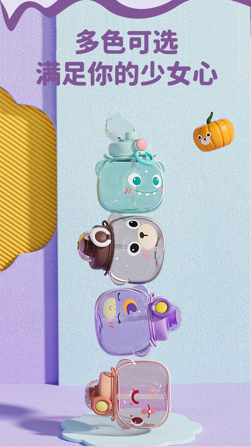 sports kettle cute cartoon bear children's cups plastic cup 2023 new double drink big belly cup one piece dropshipping