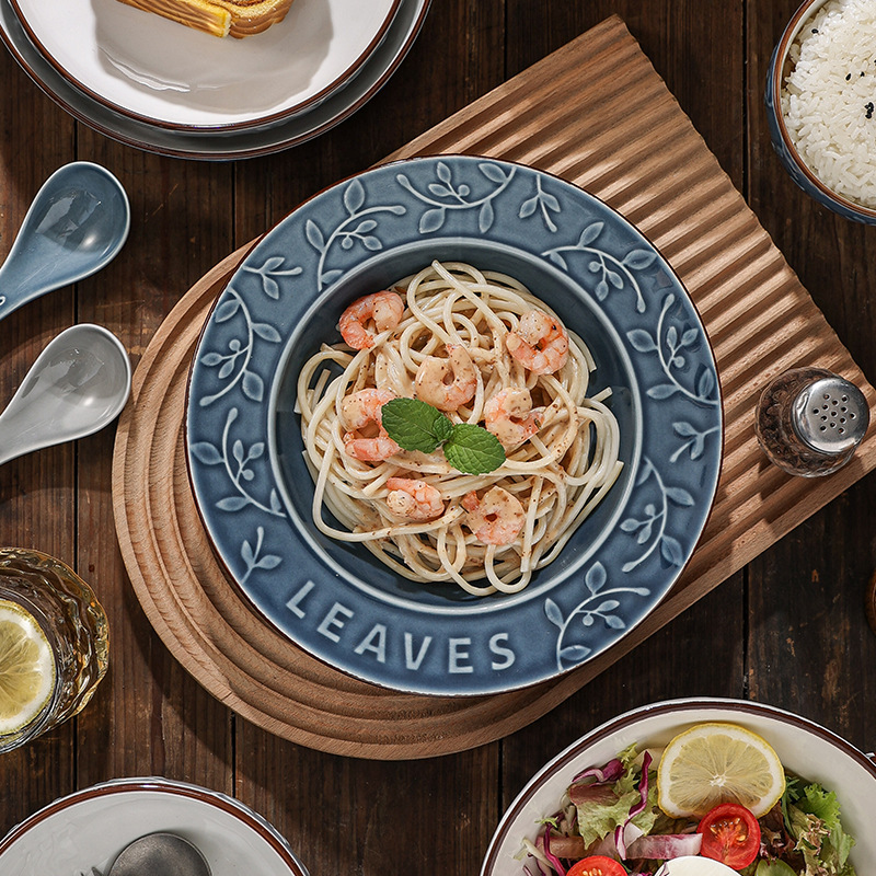 chivalrous relief plate western plate winter new household rice plate daily use gray and blue two-color gift