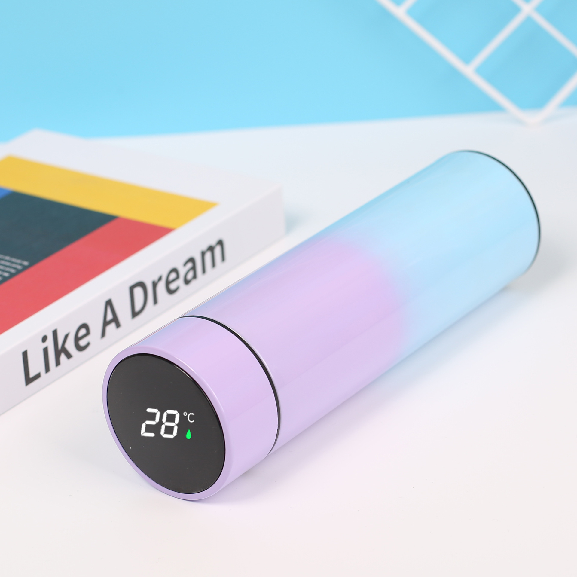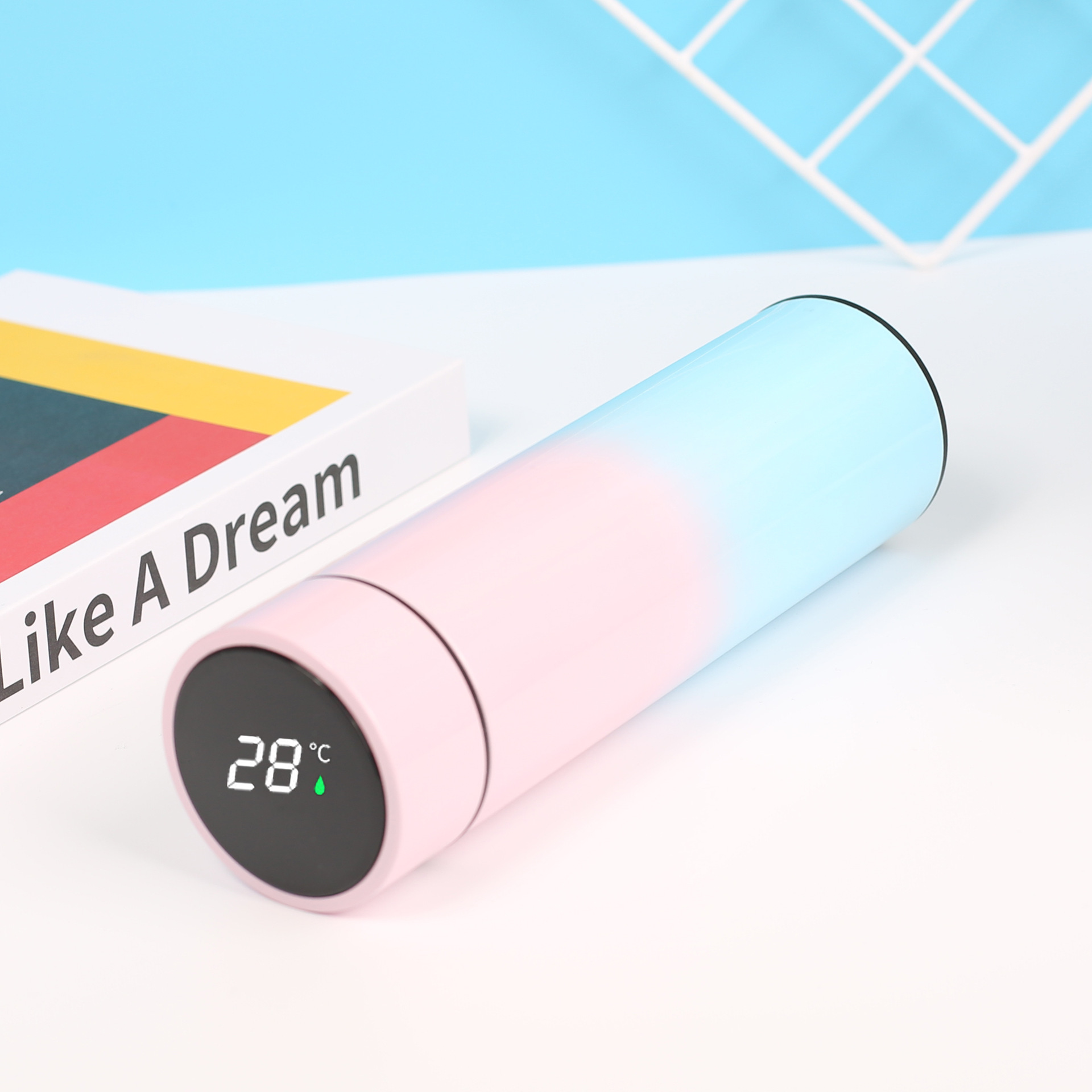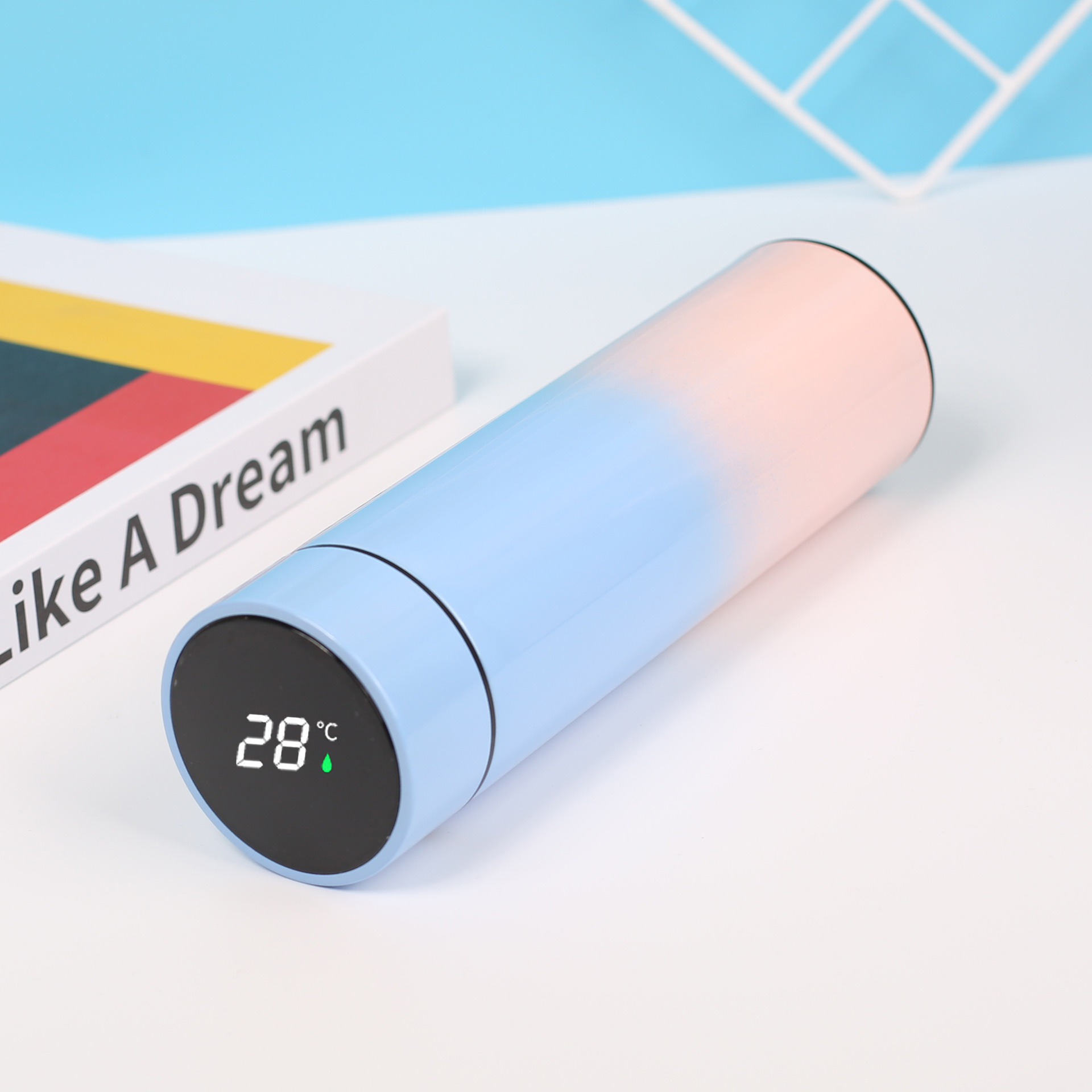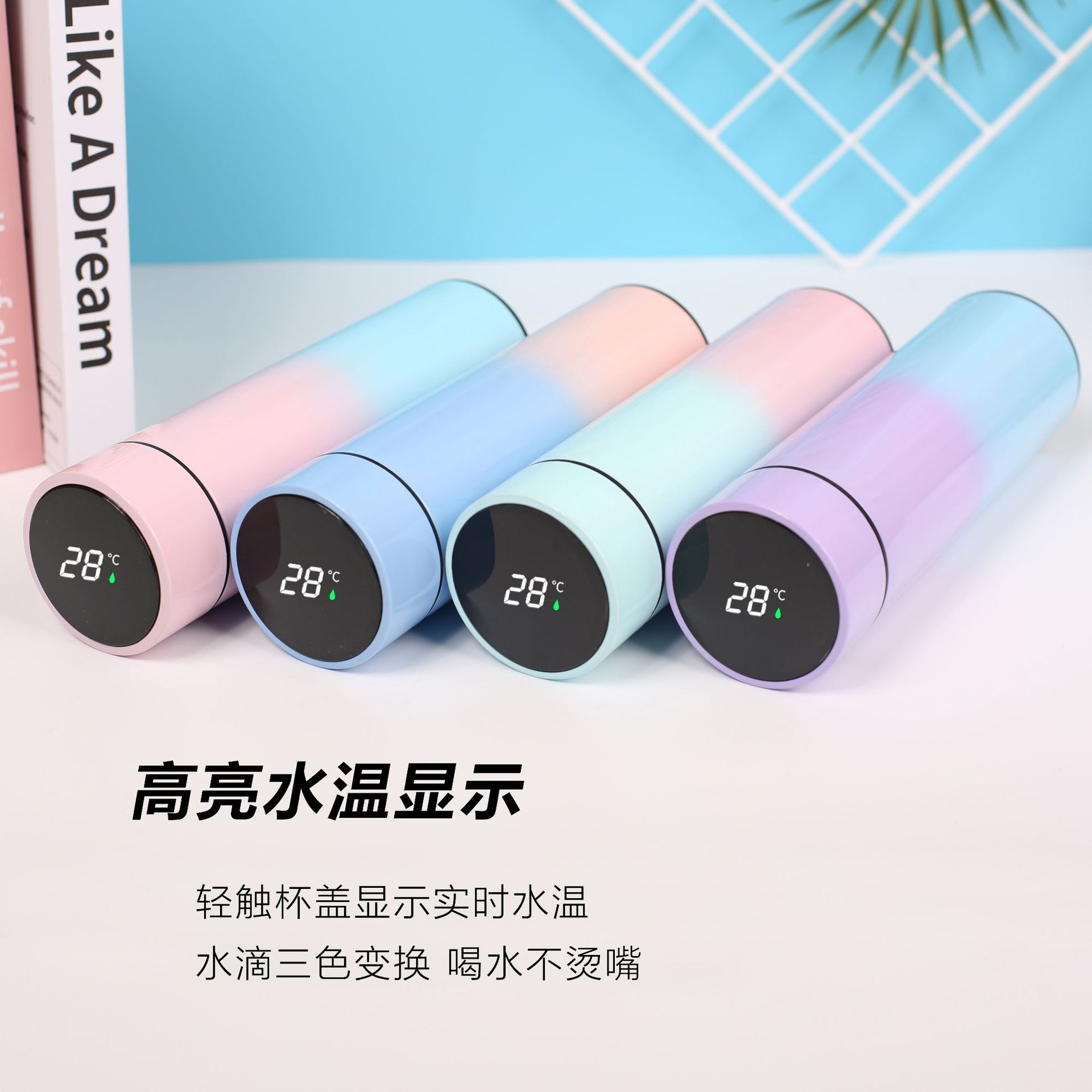 good-looking gradient color led smart temperature display 304 stainless steel vacuum cup water cup gift logo lettering 中文版