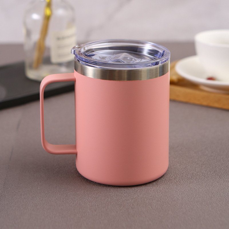 new 12oz handle mug spray plastic fashion 304 stainless steel coffee cup heat and cold insulation double-layer cup gift 中文版