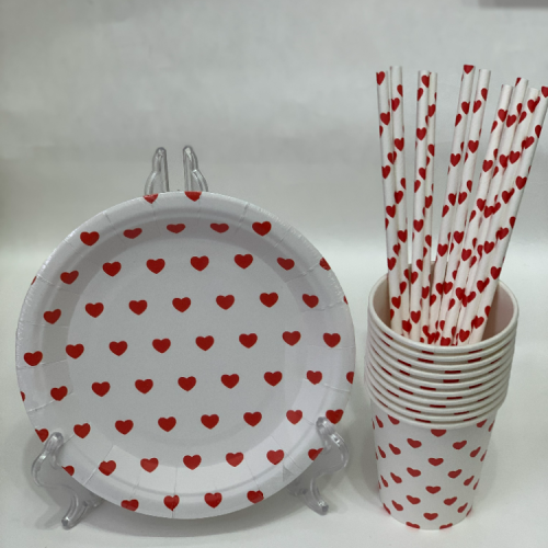 factory hot sale birthday party party disposable paper straw paper cup paper tray cup love set wholesale customization