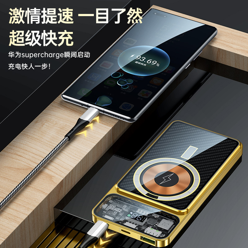 About Product:Gold Kevlar bullet-proof material Mobile Power 14 back splint battery magnetic wireless power bank 10000 mA