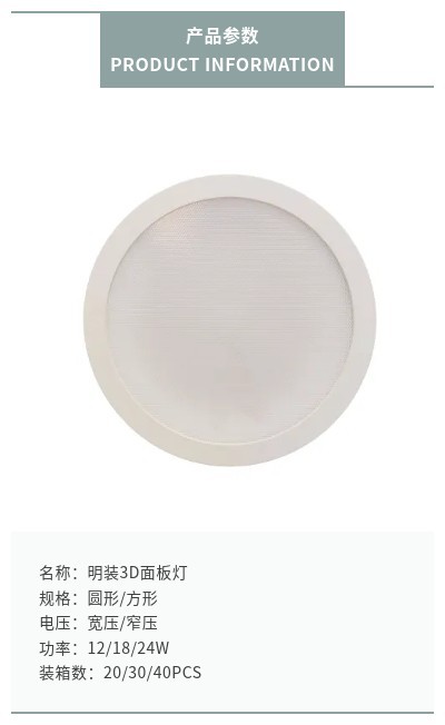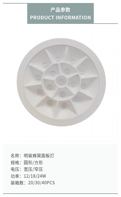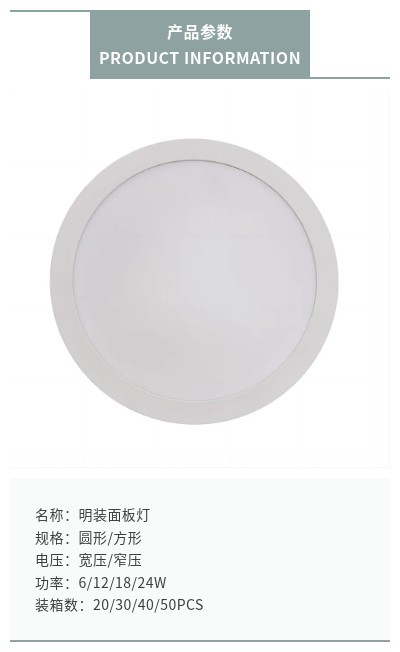 About Product:Surface mounted panel light style: common style/3D/honeycomb Power: 6/12/18/24W Voltage: wide pressure/narrow pressure