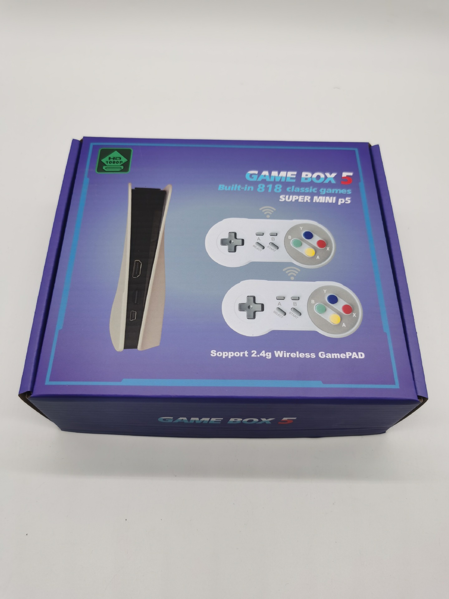 怀旧迷你电视游戏机,P5外观,内置818款高清游戏经典,内含TF卡(256)一箱装40台,实重19公斤,箱规:62*40.5*35.5CM.单台重:0.46KG.单台带彩合尺寸:19.7*17*6CM.单台主机尺寸:14.5*8*3.8CM.一套产品含(彩合1只,说明书1张,内托1只,主机1只,无线手柄:2只不带电,HDMI高清线:1条,电源USB线:1条).产品为中性普货不带电,