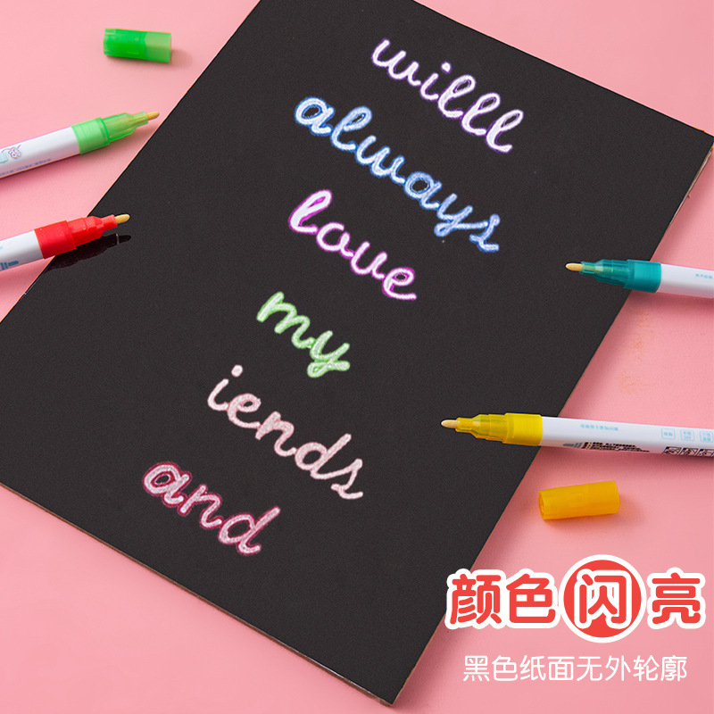 Creative Double Line Outline Marker Pen 8 Colors Diy Dream Fluorescent Pen Greeting Card Birthday Graffiti Metal Stroke Hand Account Pen