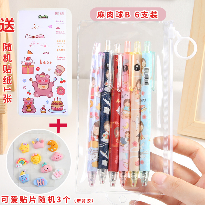 6-Piece Press Gel Pen Cute Student Exam Office Press Type Ball Pen Internet Celebrity Gel Pen Pencil Case Suit