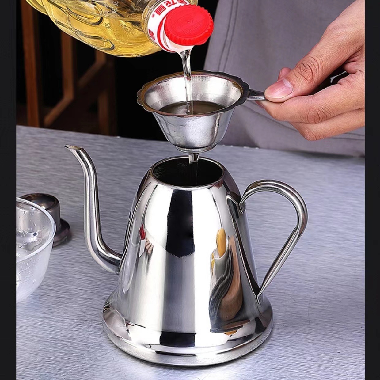hz153 stainless steel oiler kettle kitchen restaurant vinegar pot soy sauce bottle sesame oil bottle kettle tea kettle kettle