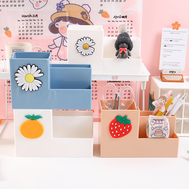 Multifunctional Cute Cartoon Pen Holder Nordic Style Fashion Storage Box Student Dormitory Office Desktop Stationery Finishing Box 中文版
