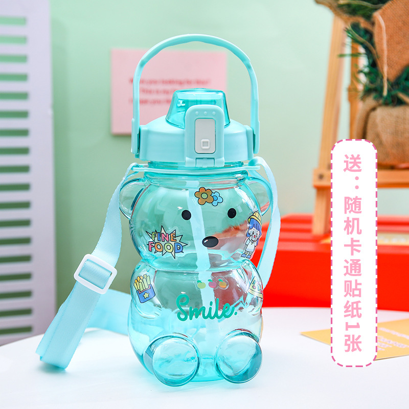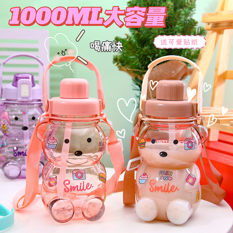 Cute Bear Water Cup Summer Large Capacity Student Good-looking Plastic Tape Straw Cup Portable Kettle Big Belly Cup 中文版