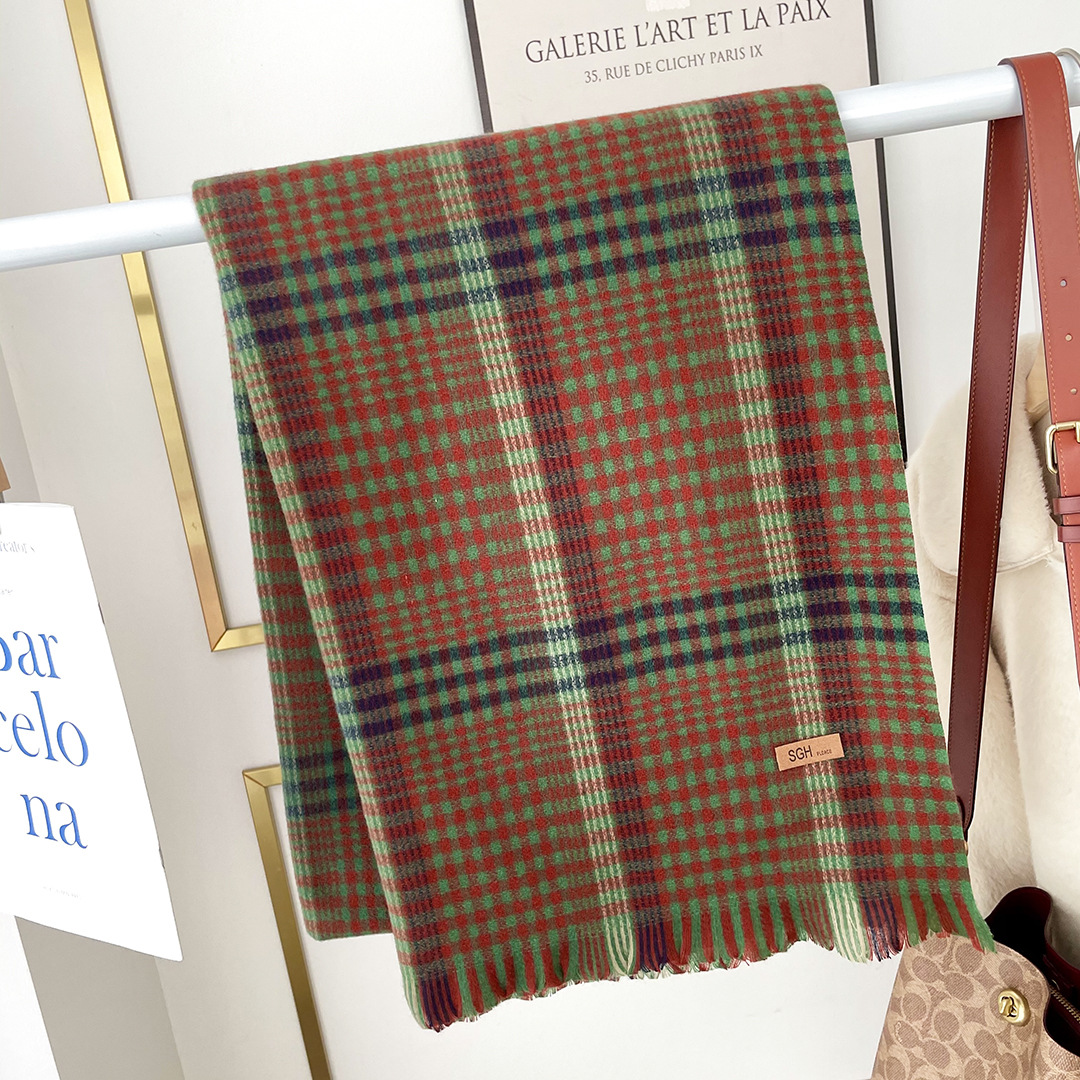 japanese-style retro cashmere-like brushed plaid scarf korean dongdaemun student online red live broadcast small fine plaid scarf fashion