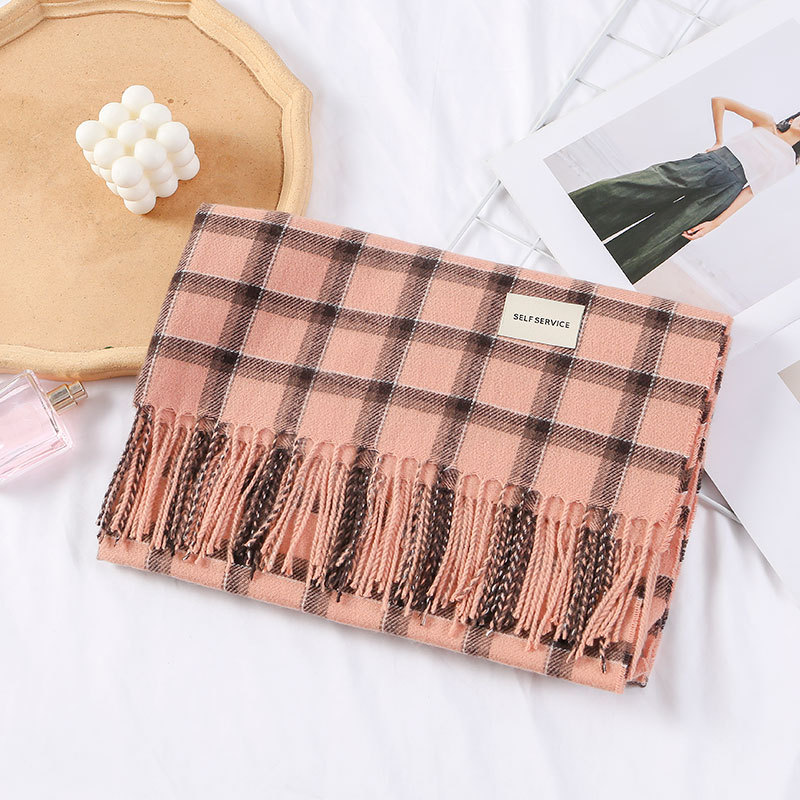 autumn and winter new korean plaid scarf women's cashmere-like all-matching thickened warm shawl retro scarf foreign trade wholesale