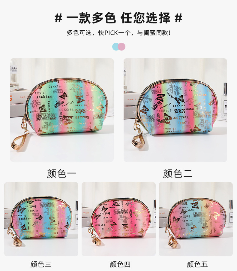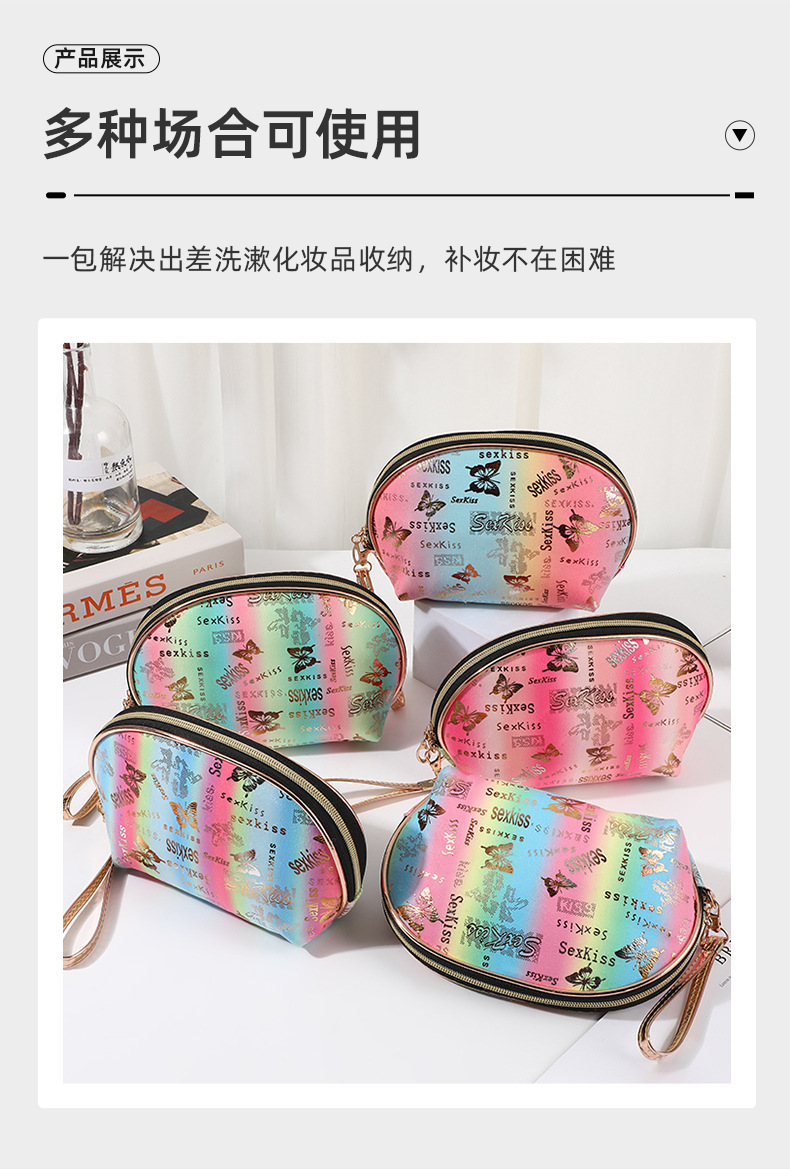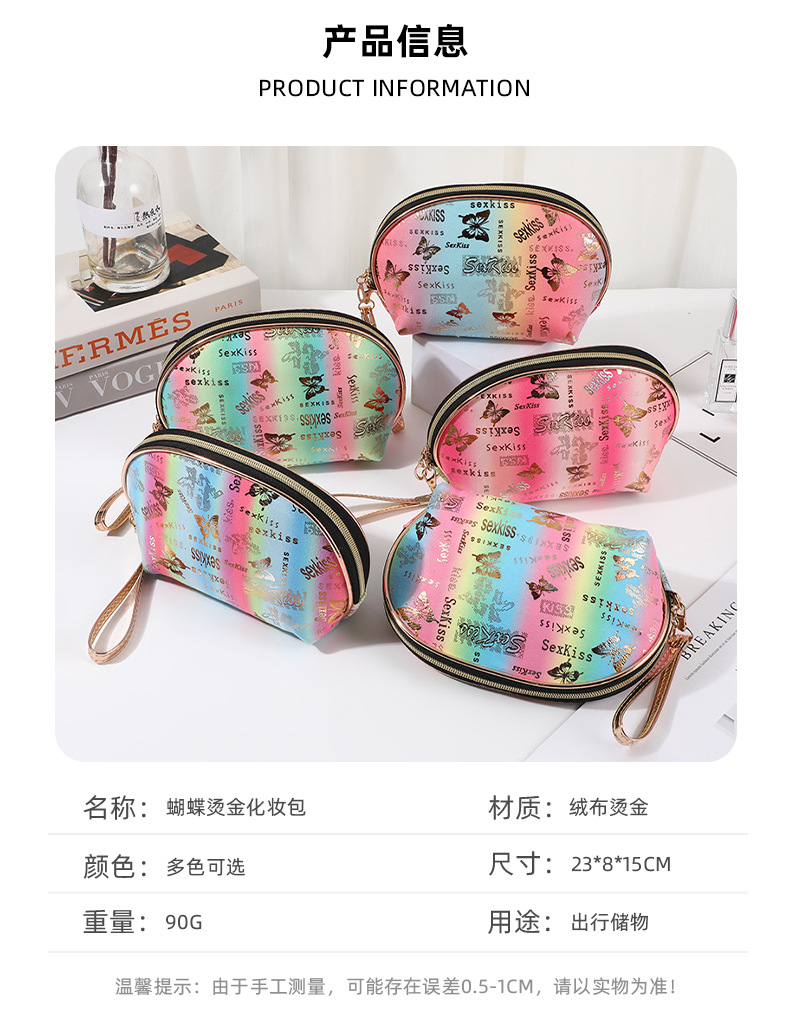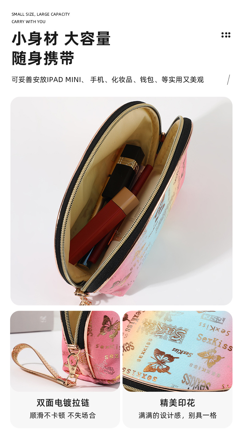 internet popular fashion cosmetic bag butterfly bronzing cosmetic storage bag waterproof and portable large-capacity zipper coin purse 中文版
