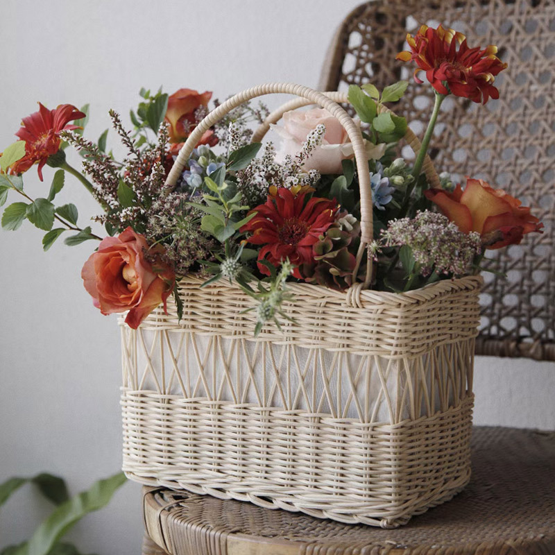 Pastoral Style Rattan Basket Bamboo Hand-Held Flower Arrangement Basket Straw Flower Decoration Materials Floral Ornaments Flower Shop Supplies