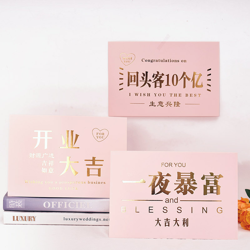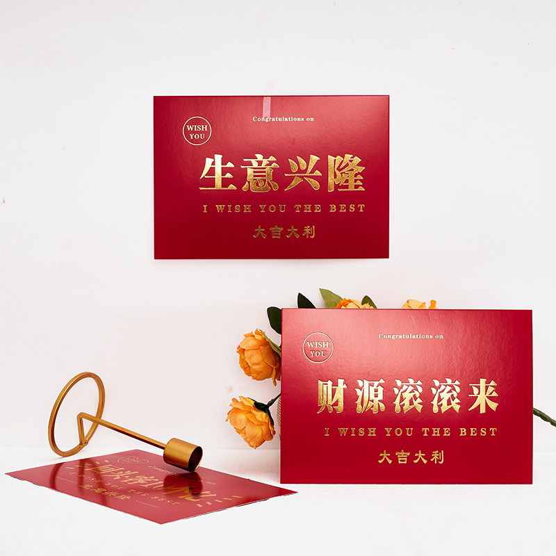 Opening Daji Gilding plus-Sized Greeting Card Housewarming Blessing Card New Year Celebration Red Card Creative Flower Basket Message Card