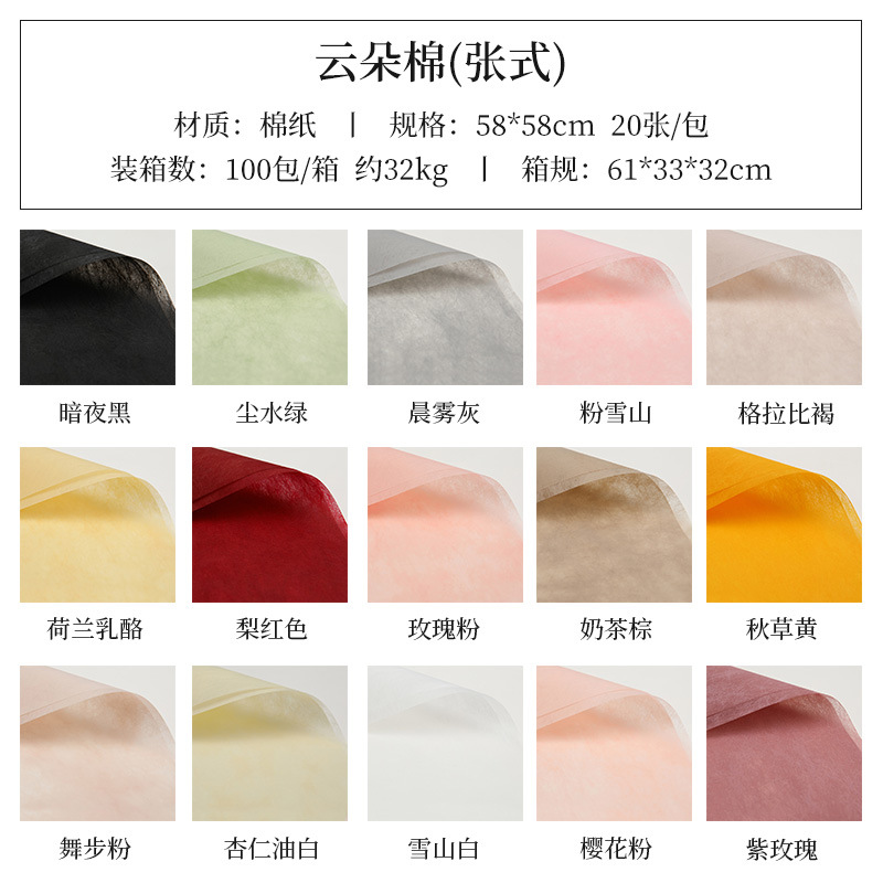 Flowers Wrapping Paper Bouquet Wrapping Paper Flower Shop Floriculture and Floral Arrangement Tissue Paper Light Solid Color Cloud Cotton Lining Dacal Paper 中文版