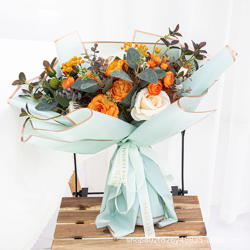 Fresh Bouquet Wrapping Paper Material Translucent Waterproof Flower Shop Bouquet Dacal Paper Thickened Golden Edge Jelly Mask