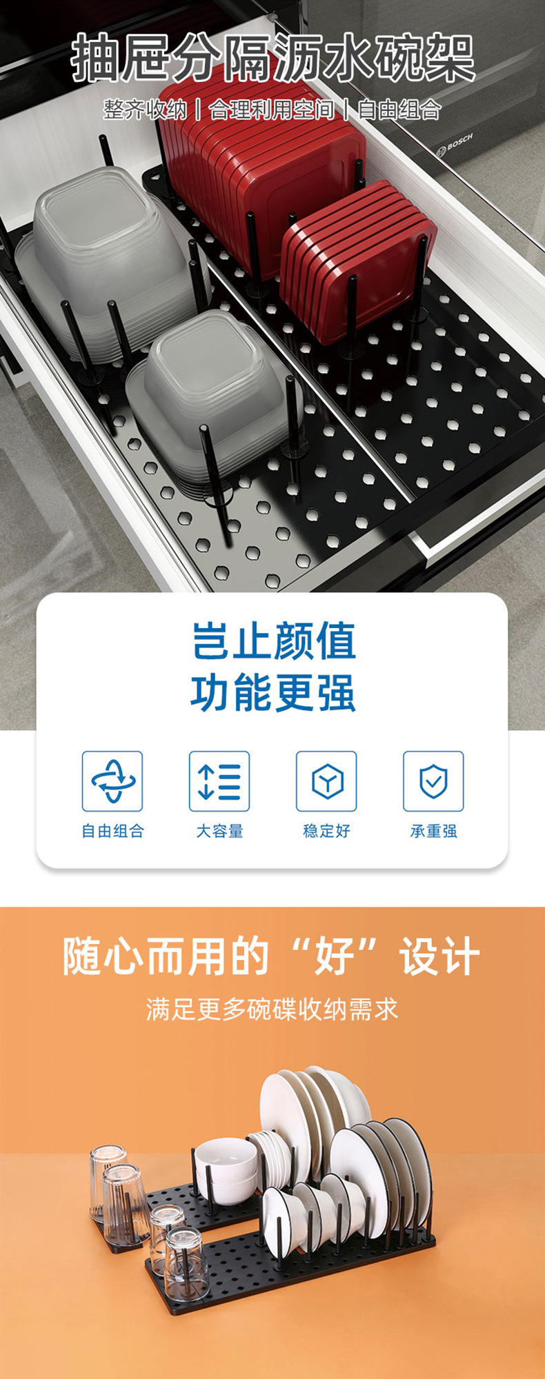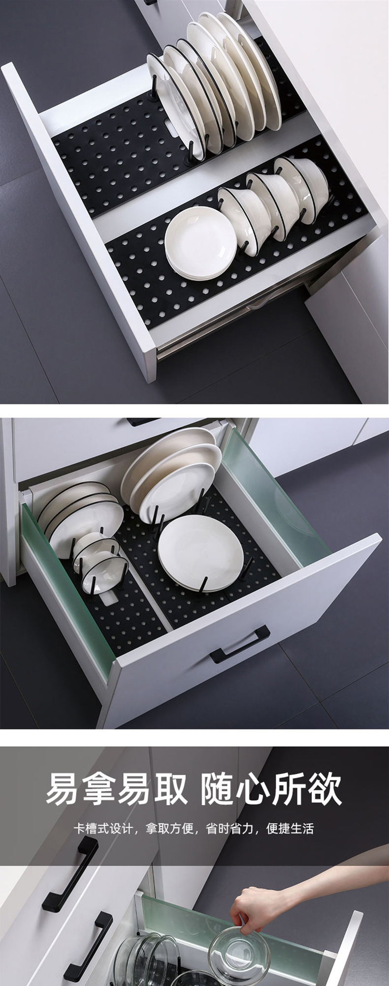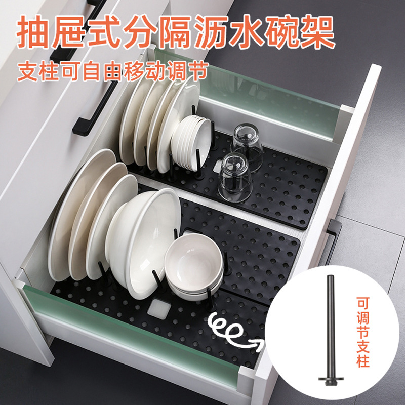 12-pole kitchen retractable draining bowl rack adjustable drawer-type separated bowl dish storage rack cup holder free disassembly 中文版