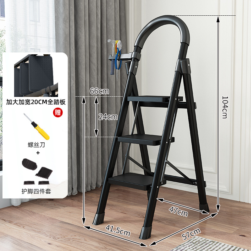 [thickened with safety buckle] black 4 step ladder