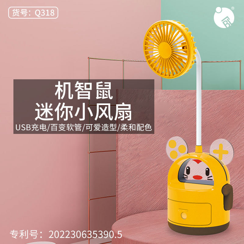 23 new style with night light cute mouse usb small fan angle adjustable second gear wind charging student multi-function electric fan
