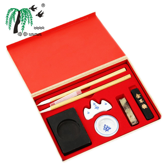 Ink Paper Inkstone Red Study Room Four Treasures Set Beginner Calligraphy Supplies Ink Paper Inkstone Gift Box Set Wholesale
