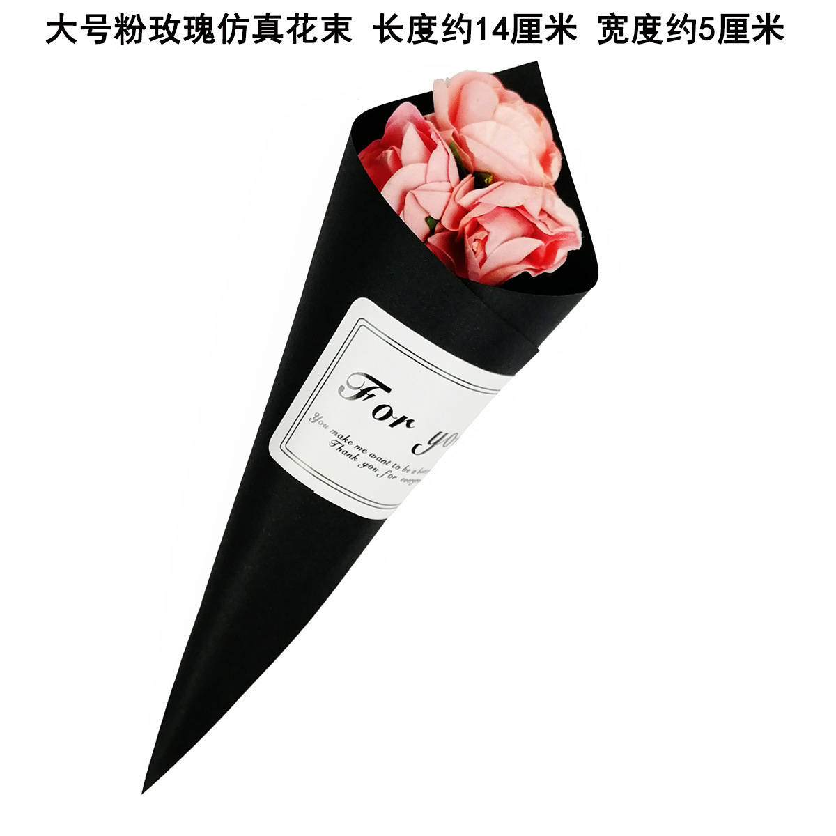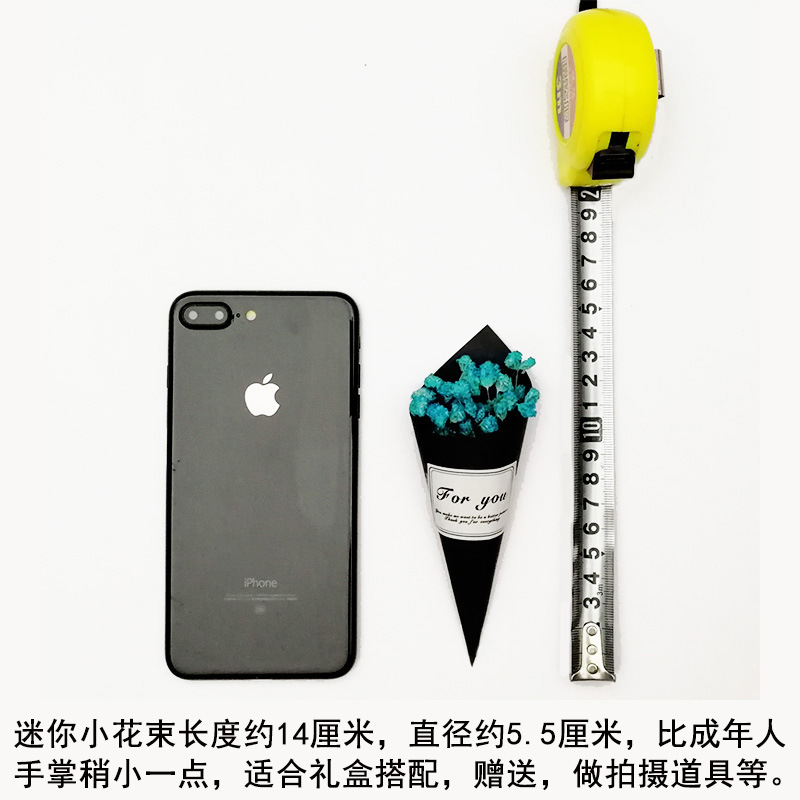 Mini bouquet measures approximately 14 centimeters in length and 5 centimeters in diameter.