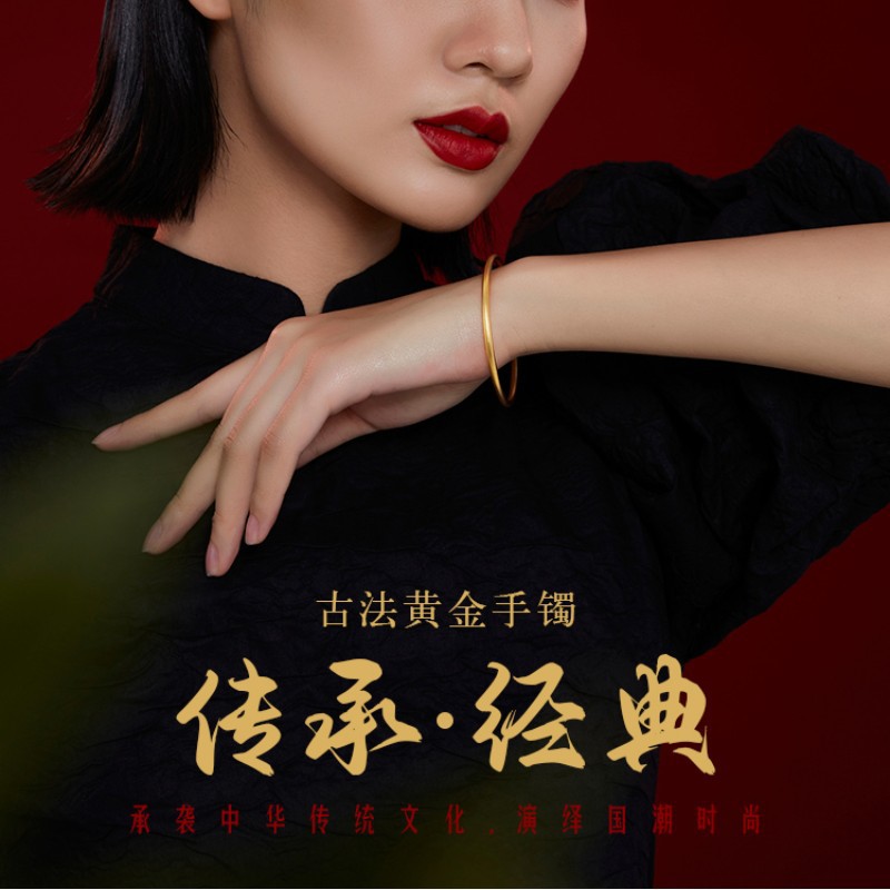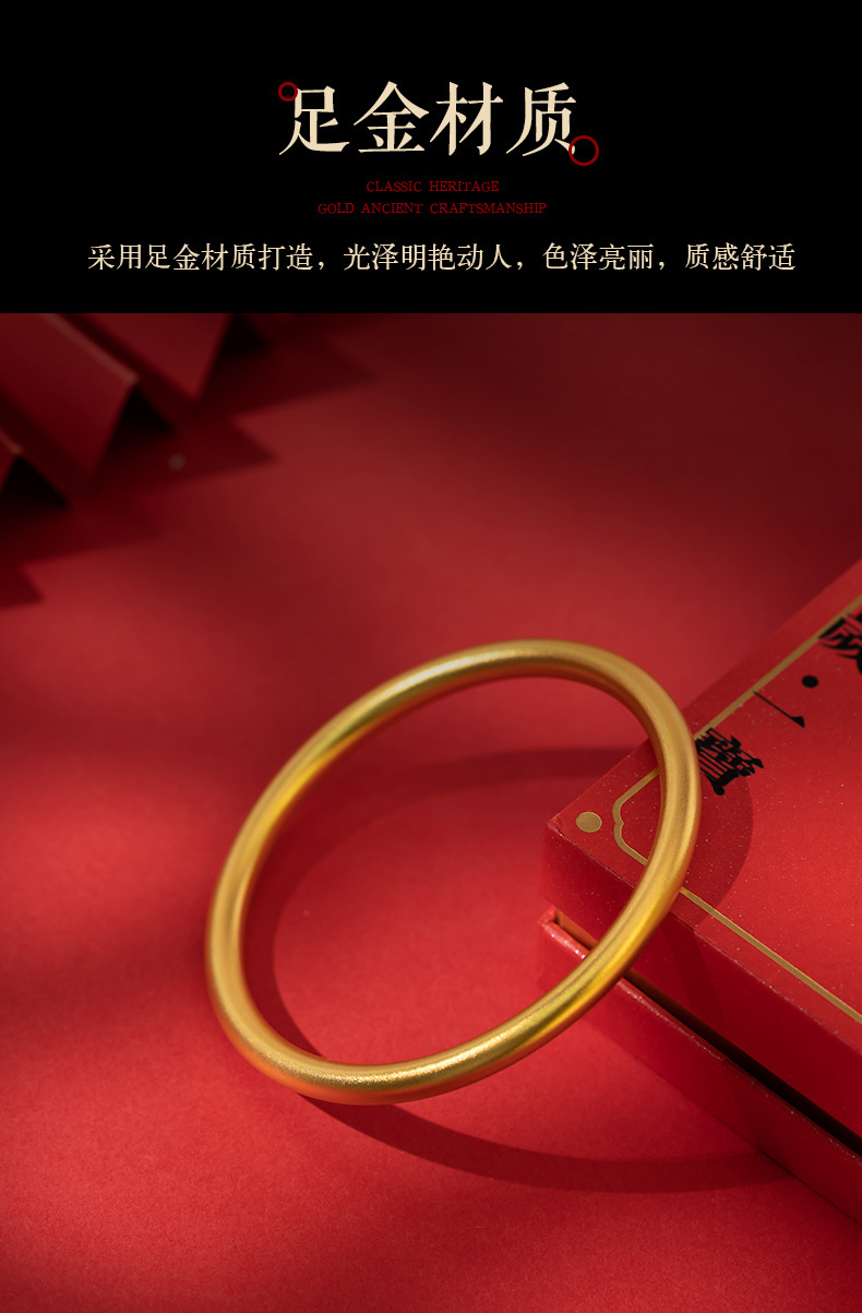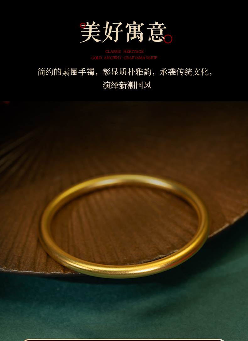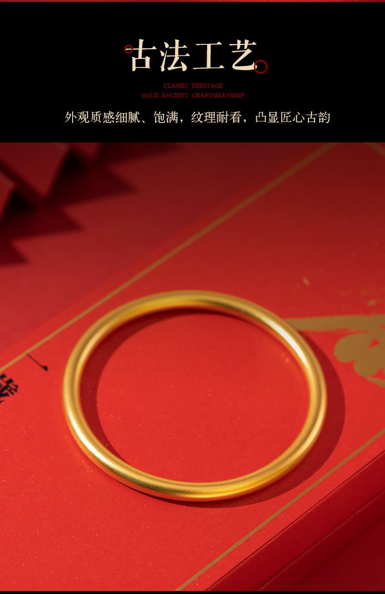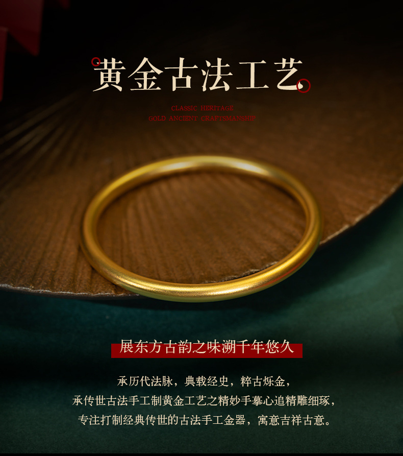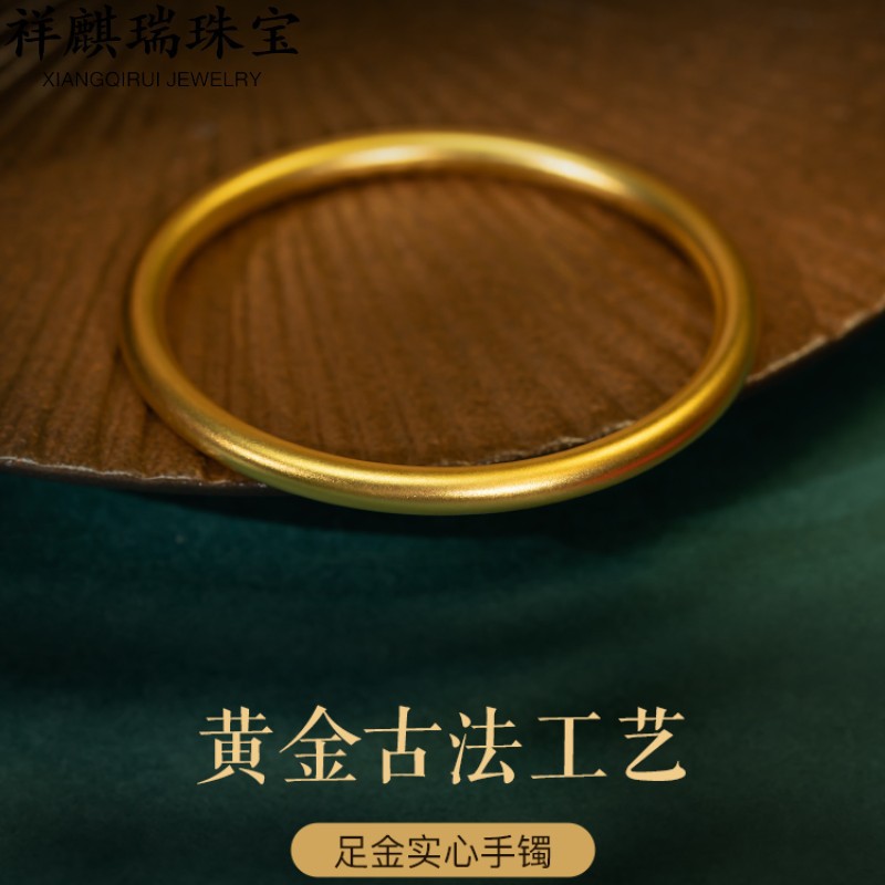 Xiangqirui Jewelry Ancient Gold Bracelet 999 Pure Gold Ancient Rhyme Heritage Gold Bracelet Solid Pure Gold Qifu All-Match