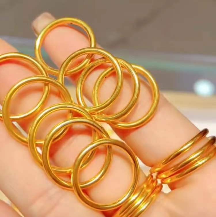 Gold 999 Pure Gold Simple Bracelet Ring Female Sansheng III Couple Couple Rings Twin Valentine's Day Gift Tik Tok Live Stream