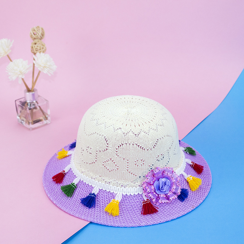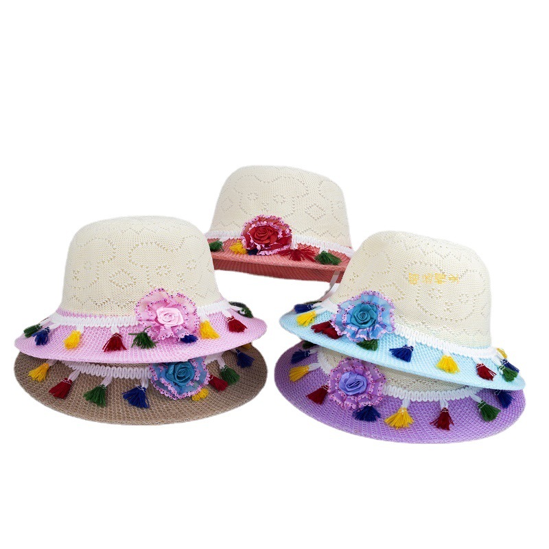 Tassel Children's Straw Hat Foreign Trade Ethnic Style Tassel Woven Baby's Sun Hat Summer Breathable Anti-DDoS Children's Hat