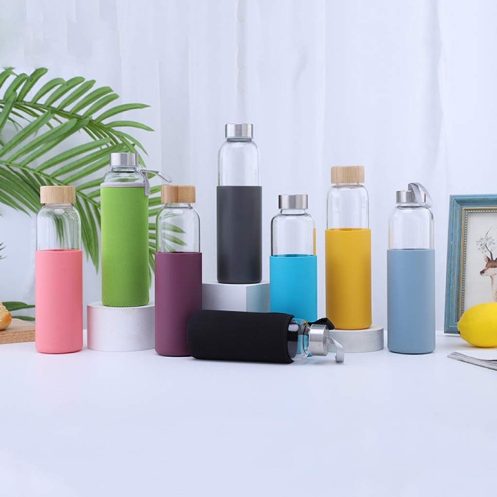 Thermal Transfer Printing Rope Holding Bamboo Cover Single-Layer Glass Silicone Protective Cover Single Layer Water Cup Outdoor Portable Glass Water Bottle 中文版