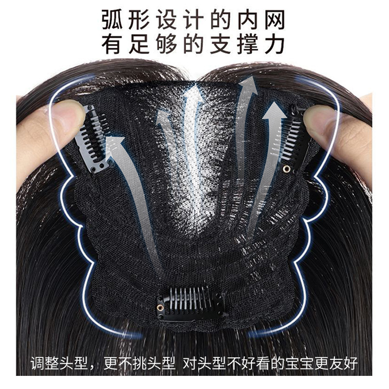 蝶形瑞士网假发片女手织轻薄增发量遮盖白发一片式头顶8