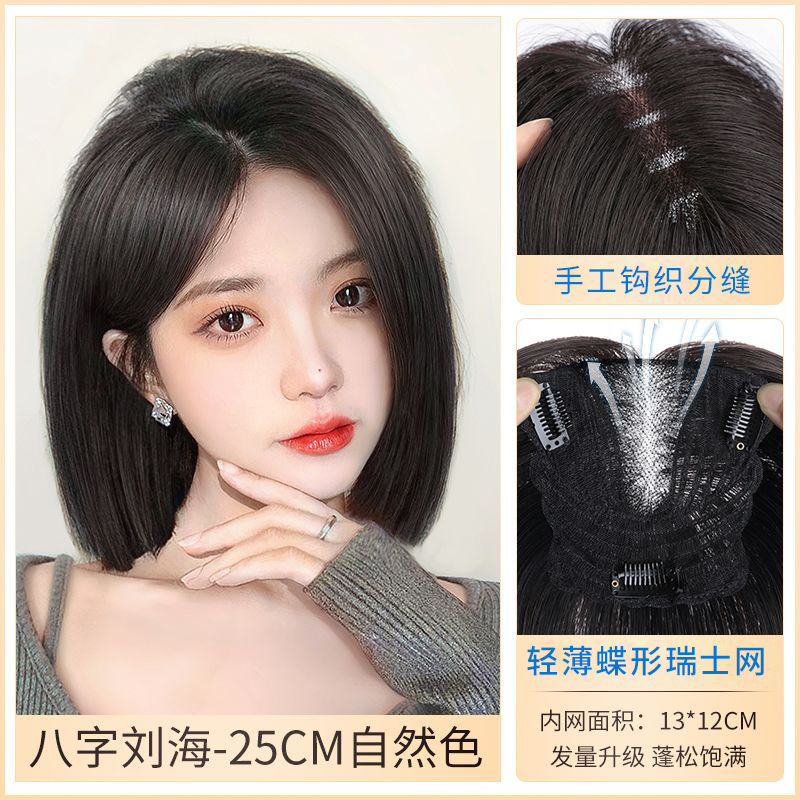 蝶形瑞士网假发片女手织轻薄增发量遮盖白发一片式头顶