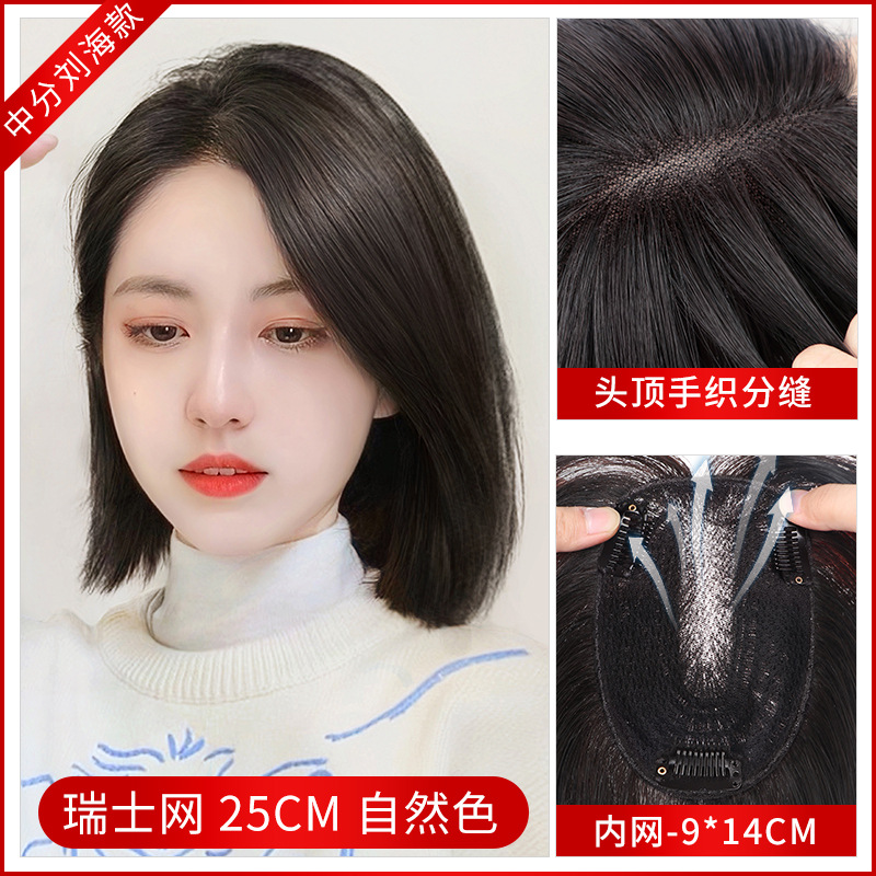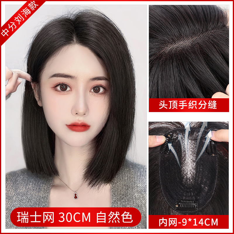 Swiss Net Wig Set Female Head Hair Supplementing Piece Fluffy Cover Bald Cover Gray Hair Seamless Wig Real Hair Full Real Human Hair 中文版