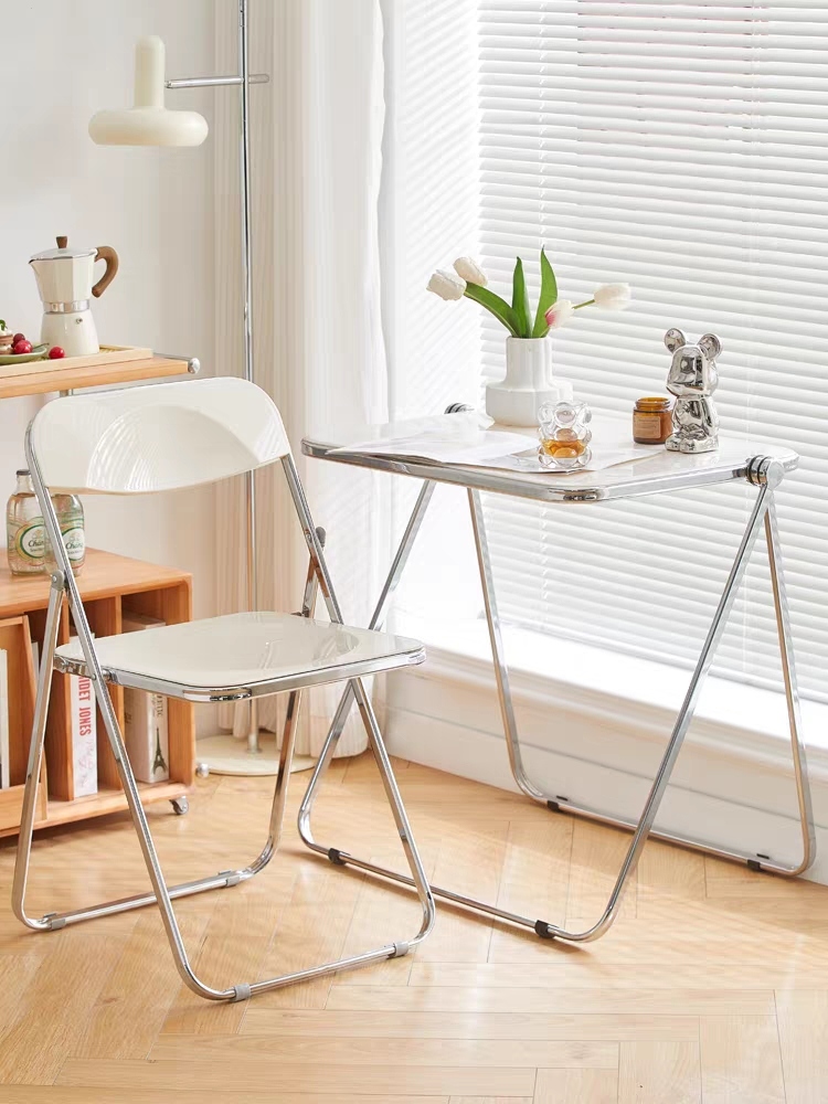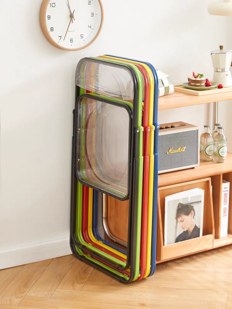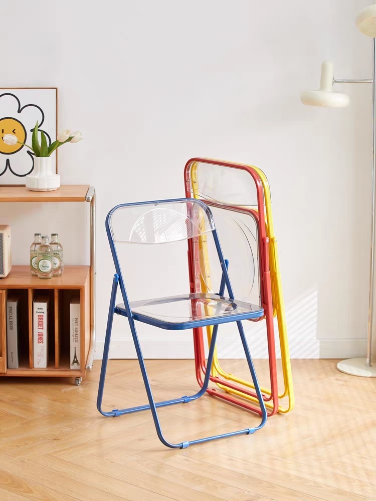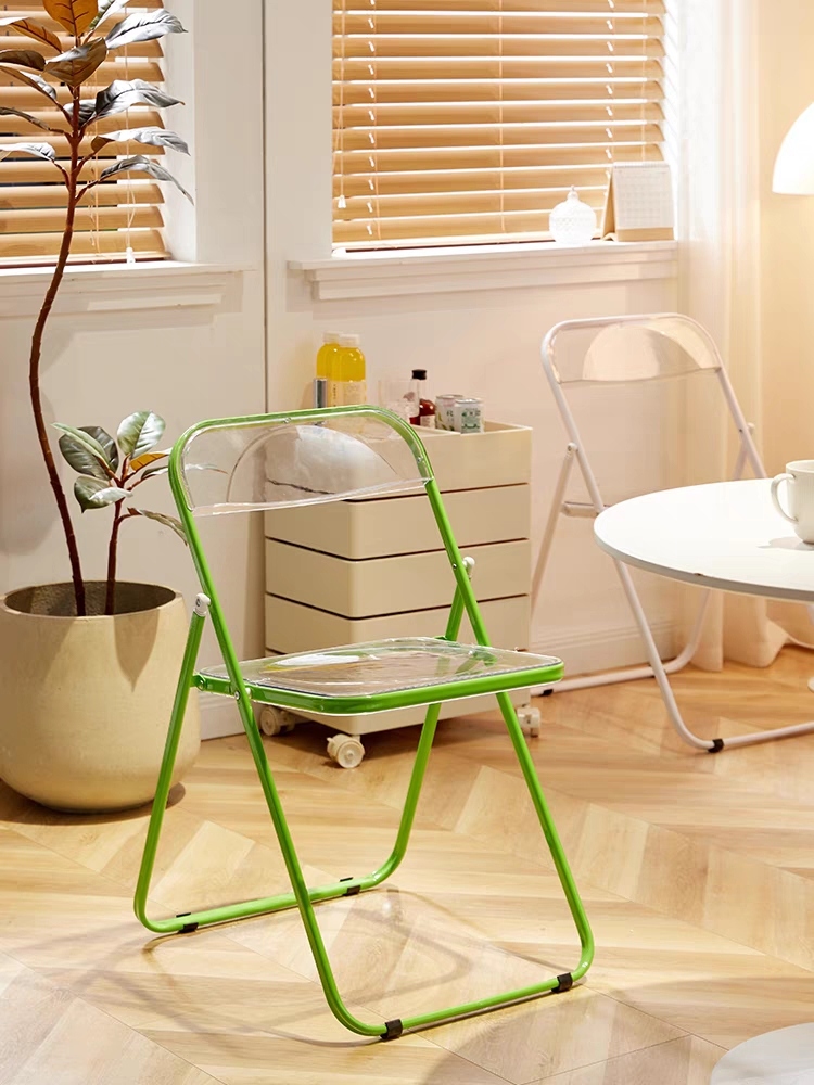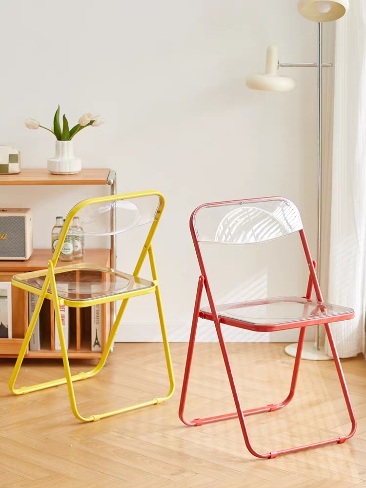 transparent folding chair home backrest plastic net red street clothes photo chair coffee shop milk tea shop stool 中文版