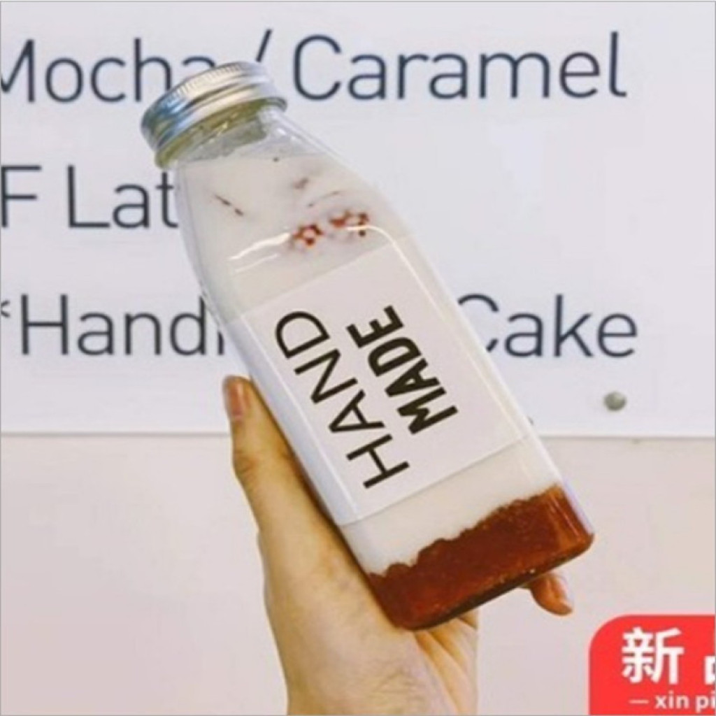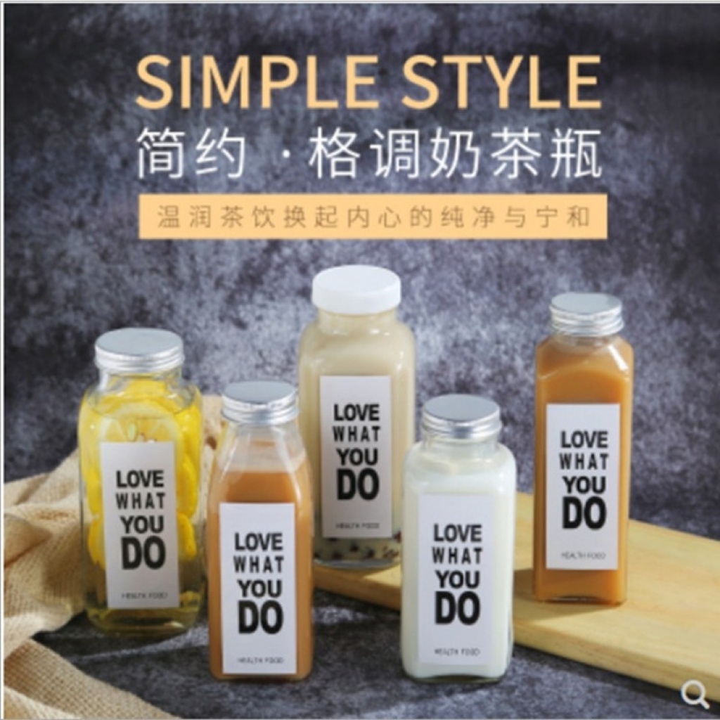Sublimation Glass Milky Tea Bottle Square Tea Beverage Bottle Sealed Outdoor Coffee Enzyme Juice Cow's Milk Bottles 中文版