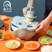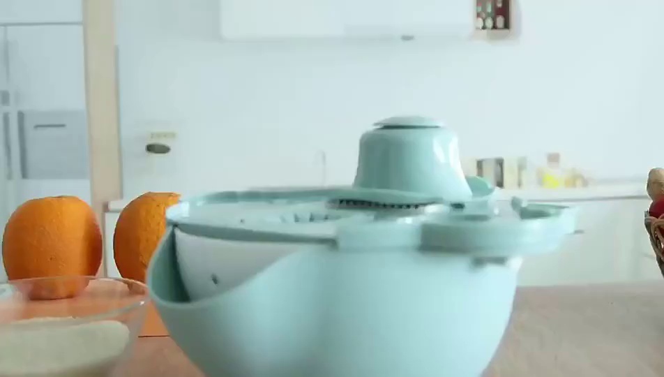 【产品功能】:切丝,切片,磨姜末,切花型,沥水洗菜,打皮,蛋清分离,榨汁,手机支架(可以单独用作果盘)。
