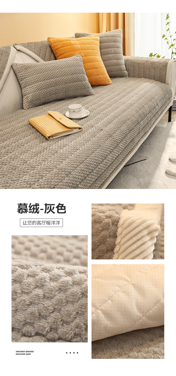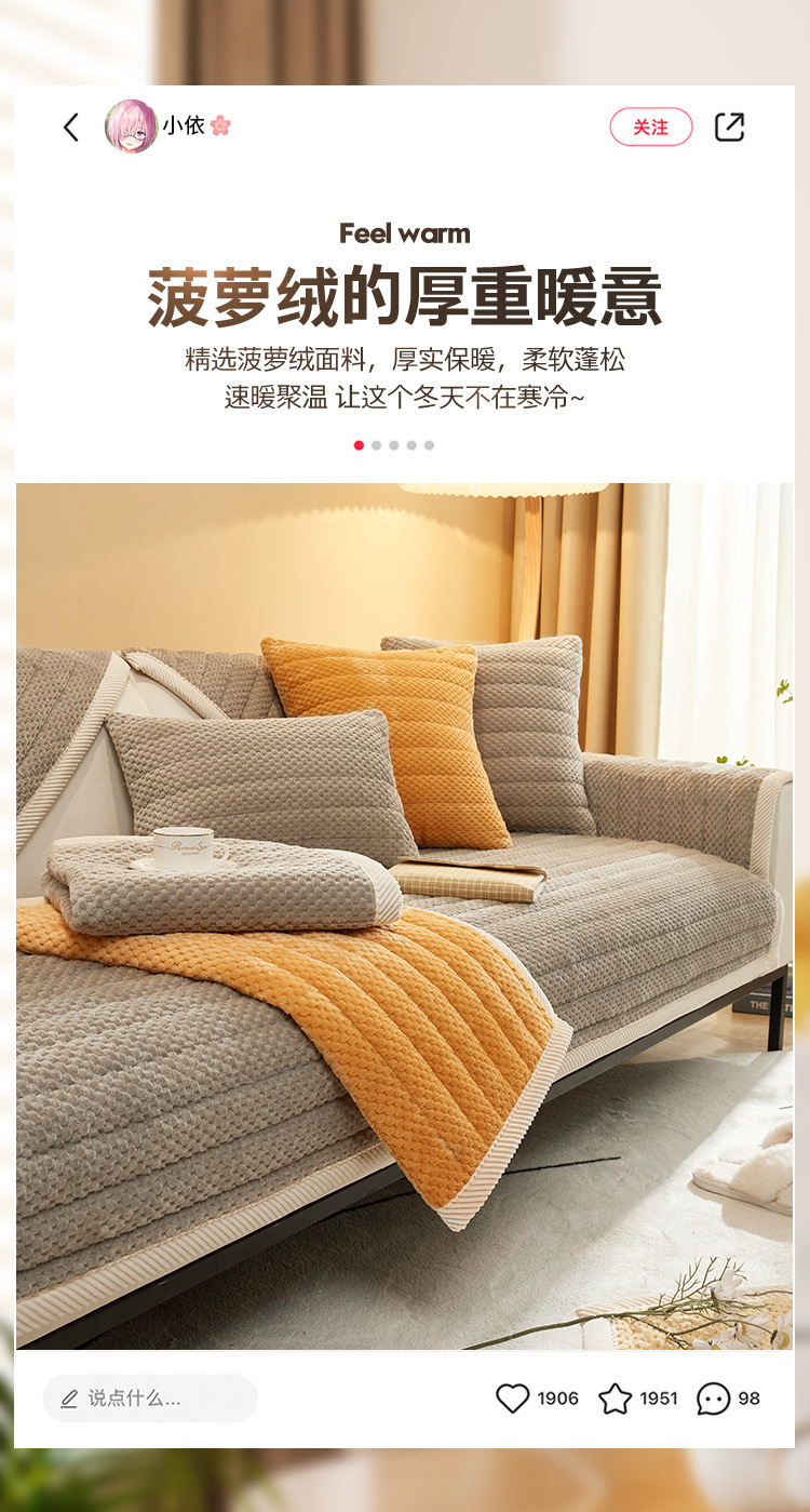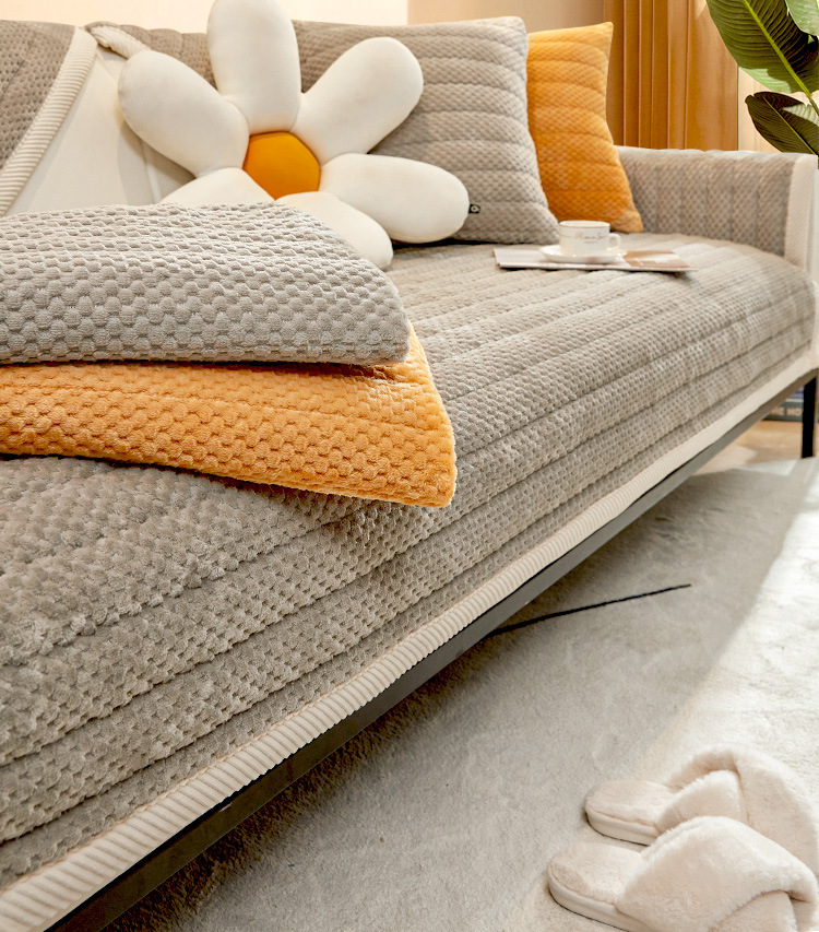 2023 New Cream Style Pineapple Velvet Sofa Cushion Warm Thickened Cushion Winter Plush Cover Towel Sofa Cover