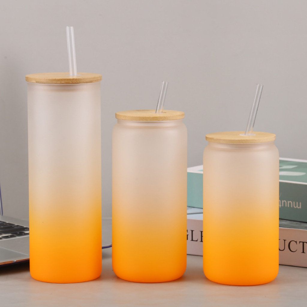 Gradient Color Glass Hot Sale Heat Transfer Color Base Coating Sublimation Matte Water Cup Straight Straw Cup HTT 中文版