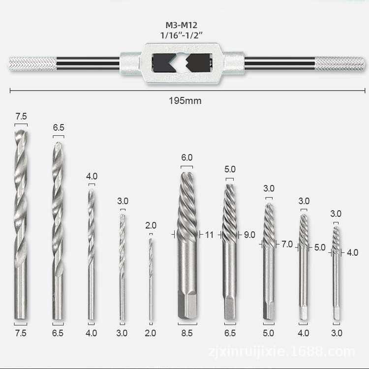 11-Piece Set of Broken Stud Spanner Sliding Tooth Breaking Screw Automobile Maintenance & Repair Tools Reverse Wire Pouring Tool 中文版