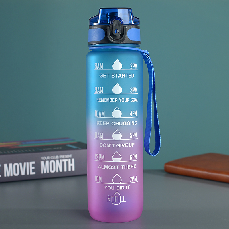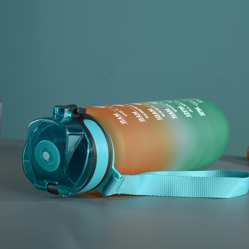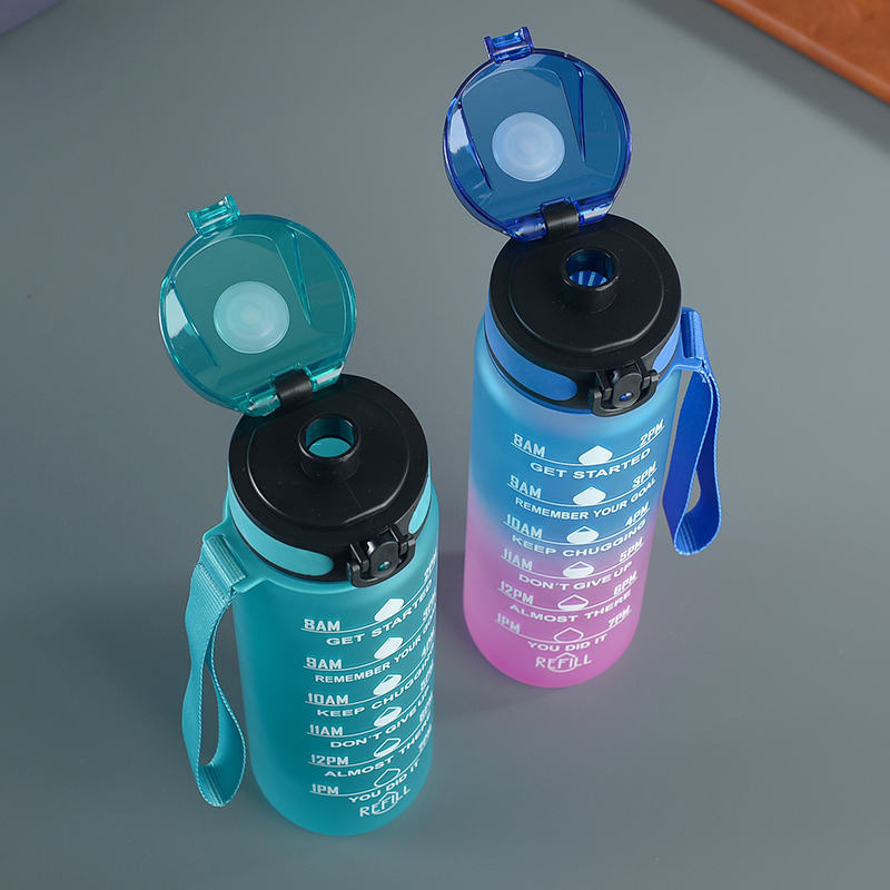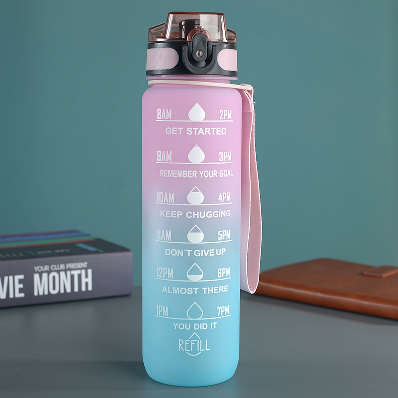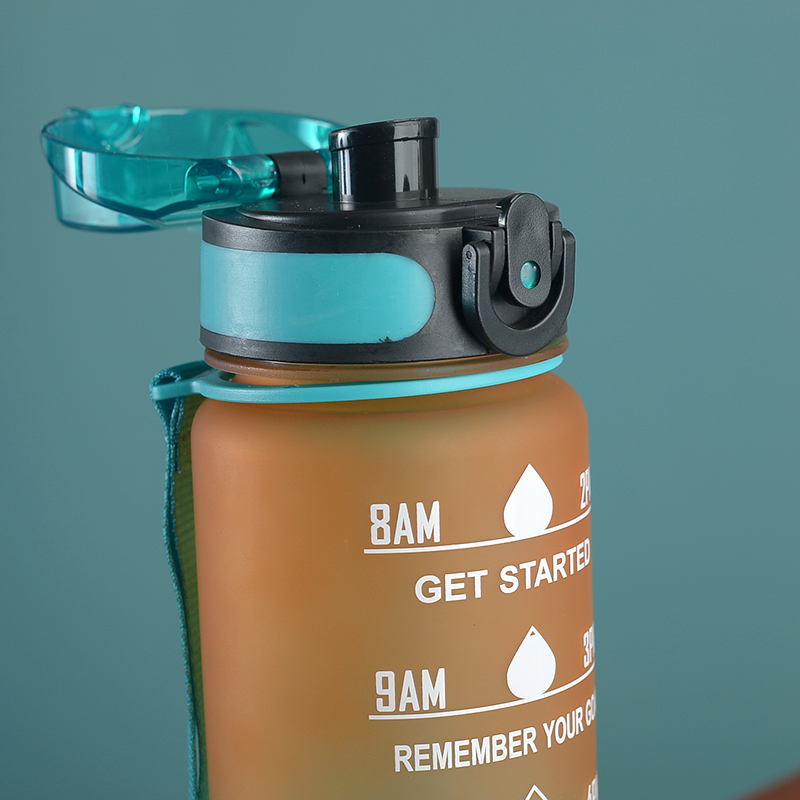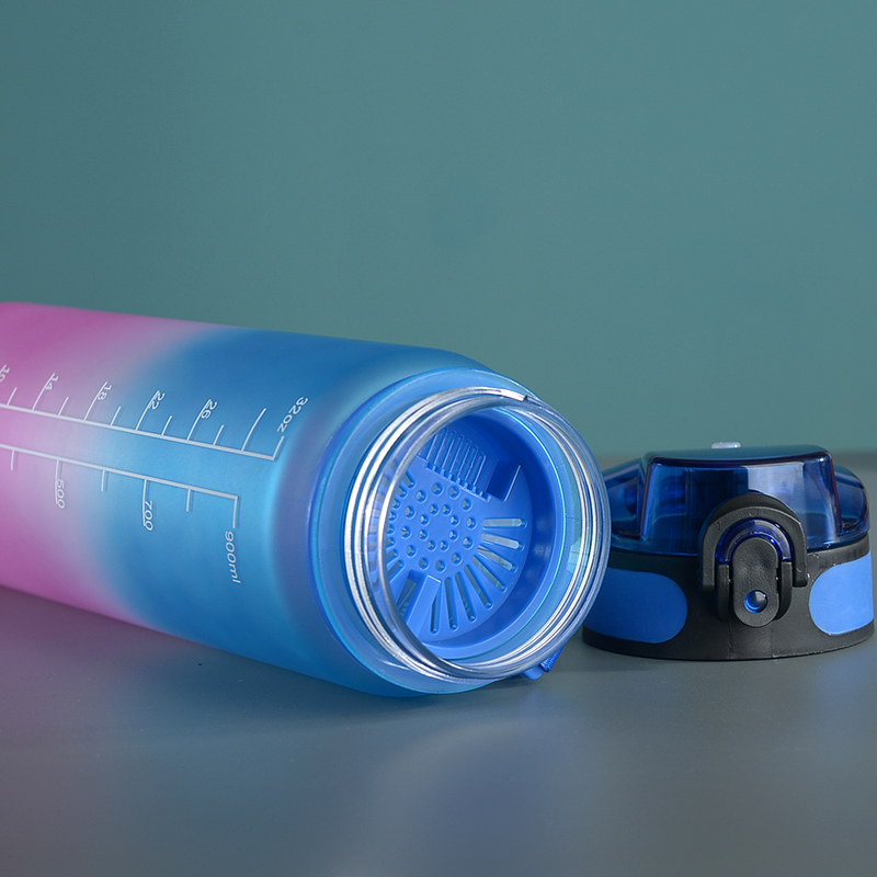 amazon gradient ribbon tea compartment bounce cover direct drink space cup portable outdoor fitness sports frosted plastic cup 中文版