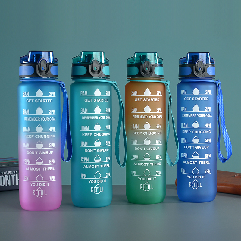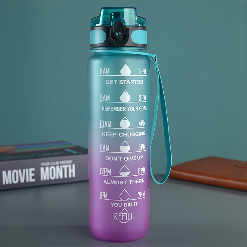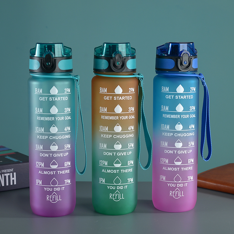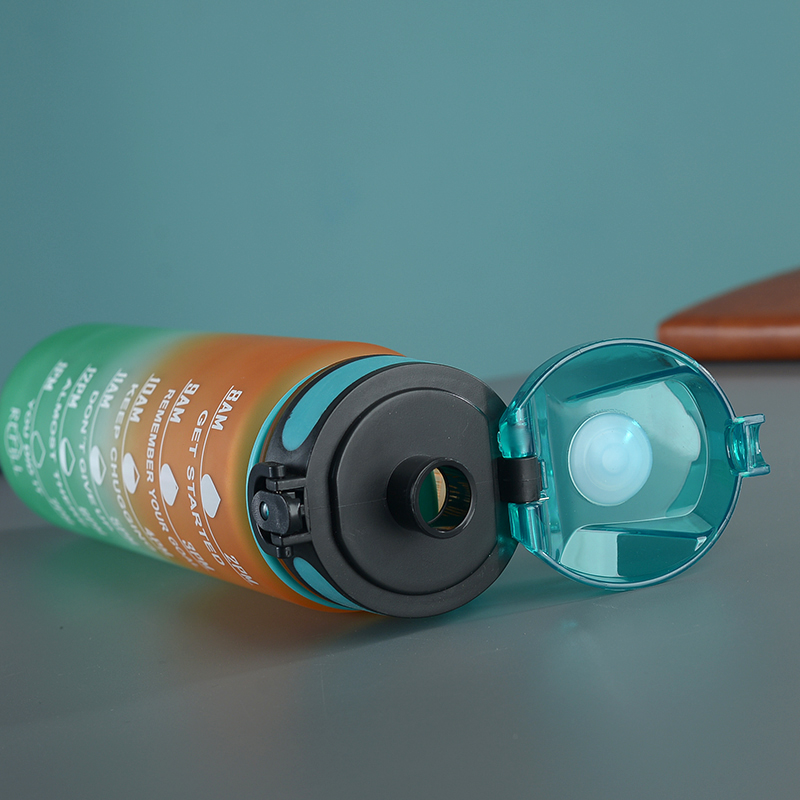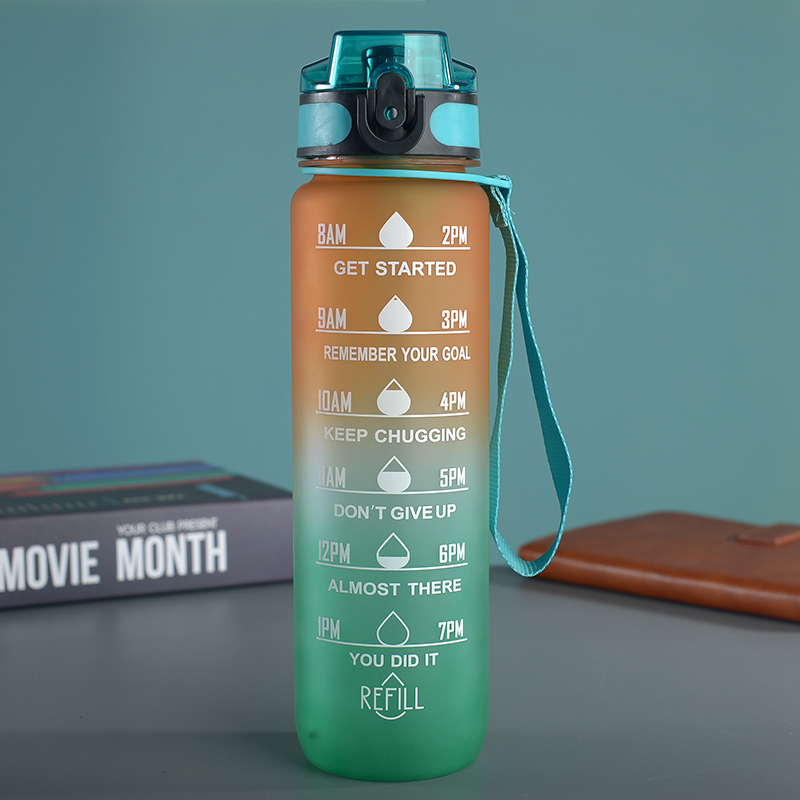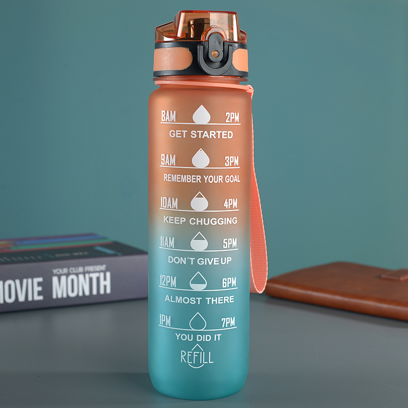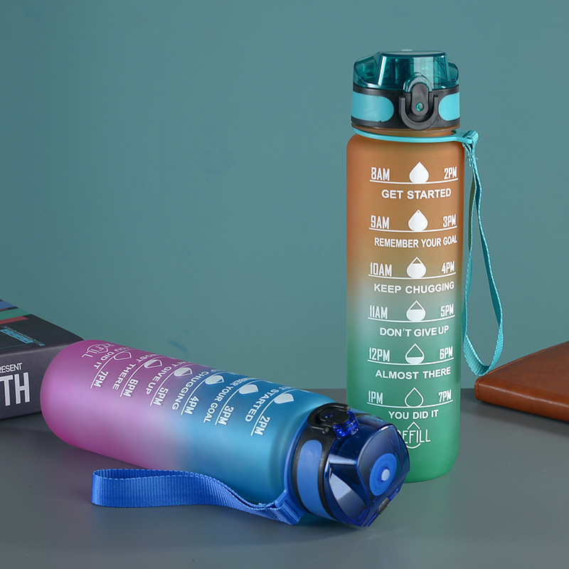 amazon gradient ribbon tea compartment bounce cover direct drink space cup portable outdoor fitness sports frosted plastic cup 中文版