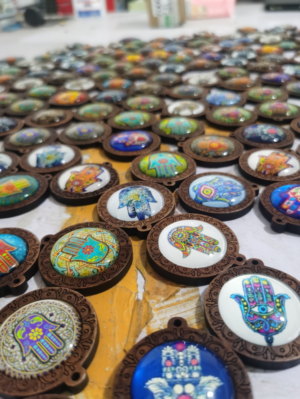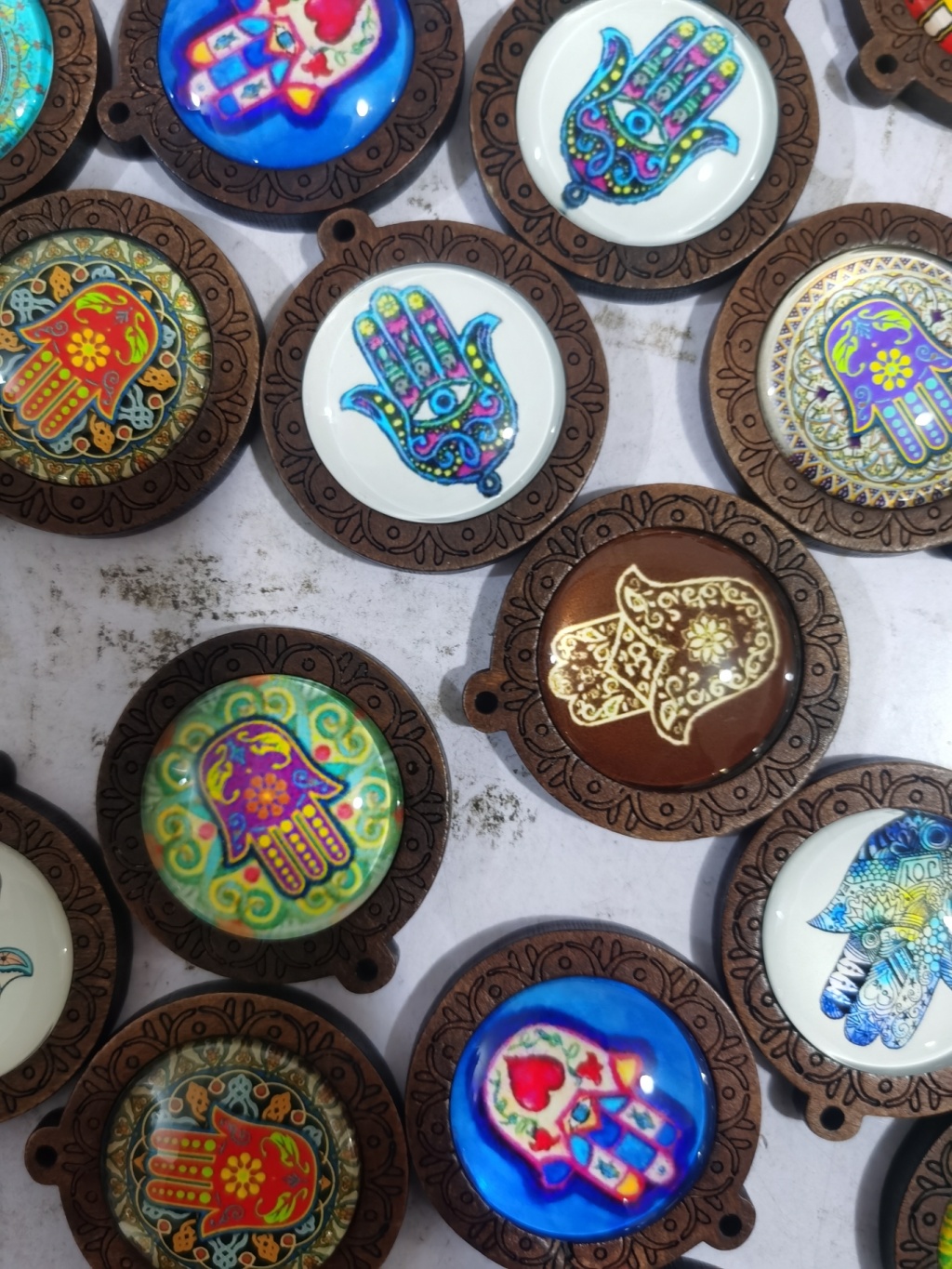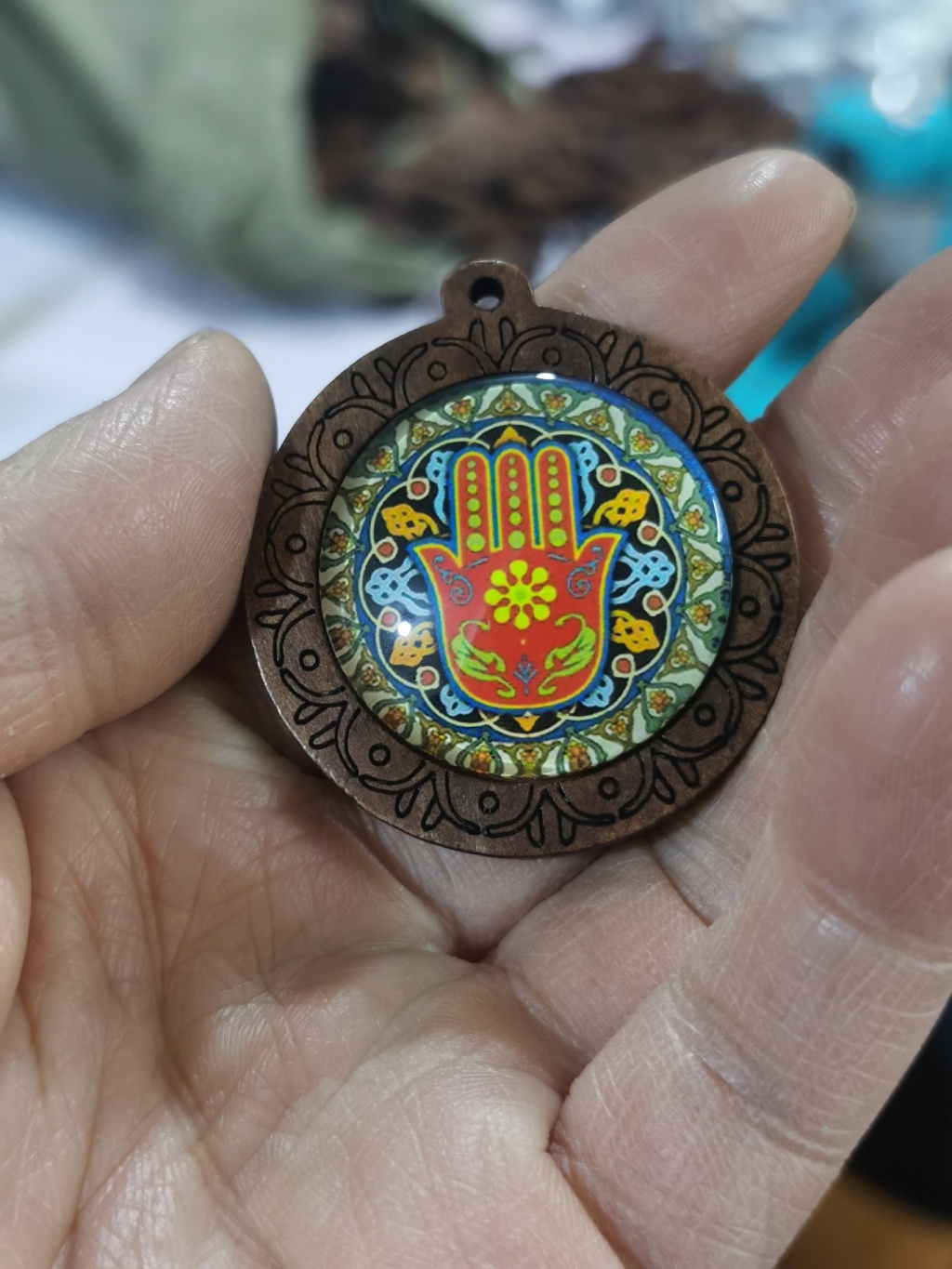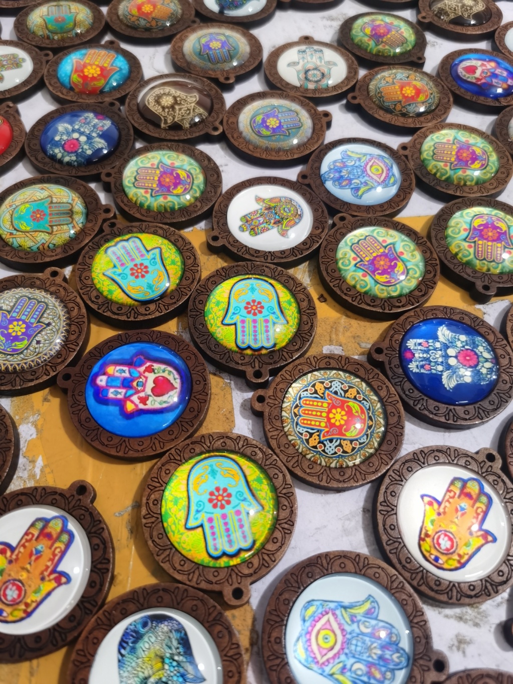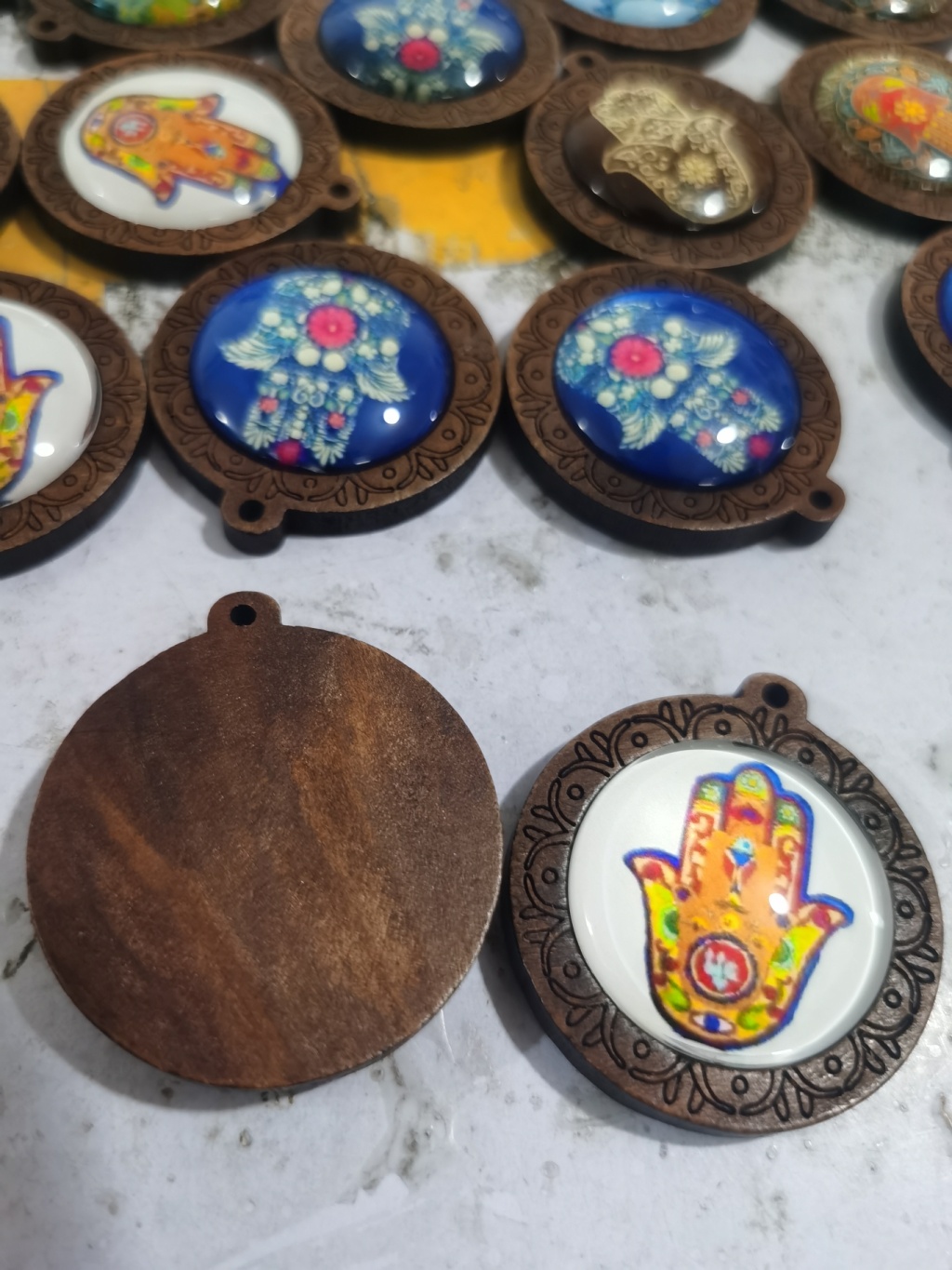 wish hot sale at aliexpress wooden palm time stone glass pendant necklace foreign trade ornament semi-finished products 中文版