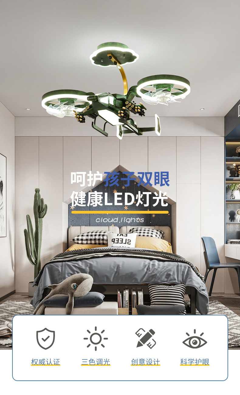 [cross-border] children's room aircraft light helicopter shape boy bedroom light lighting dual-purpose fan ceiling light