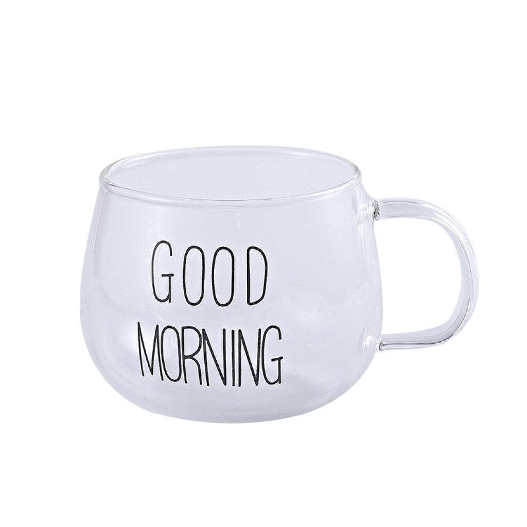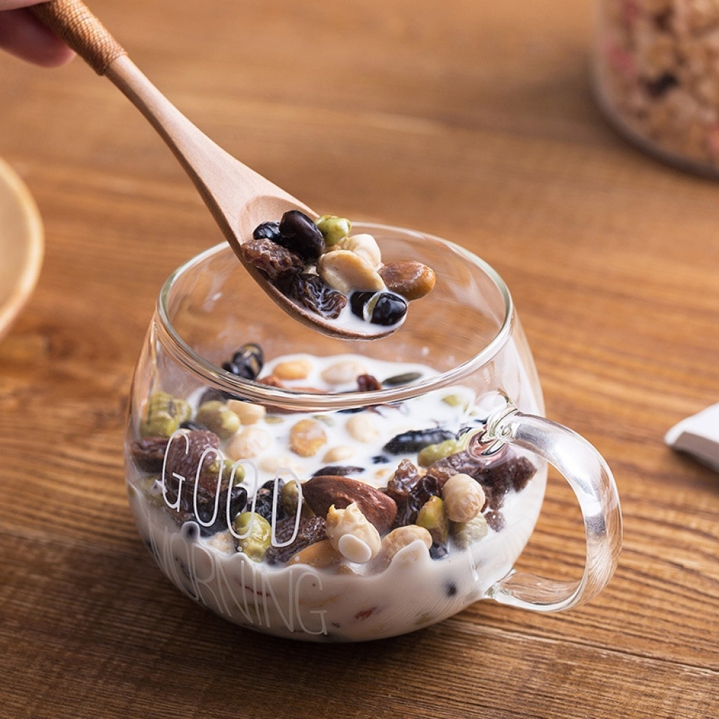 Glass Breakfast Cup Household Large Capacity Transparent Oatmeal Cup with Handle Juice Milk Glass Big Belly Drinking Cup 中文版
